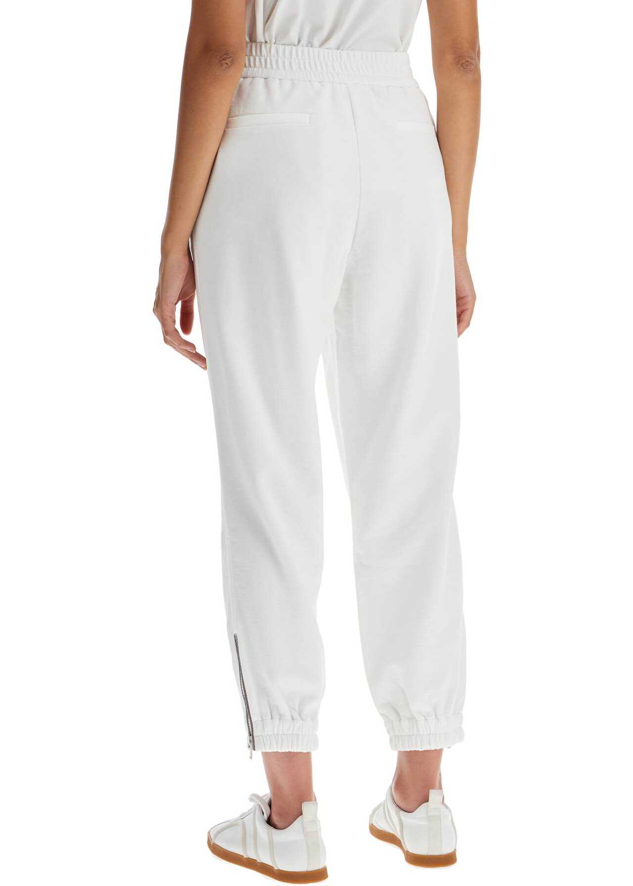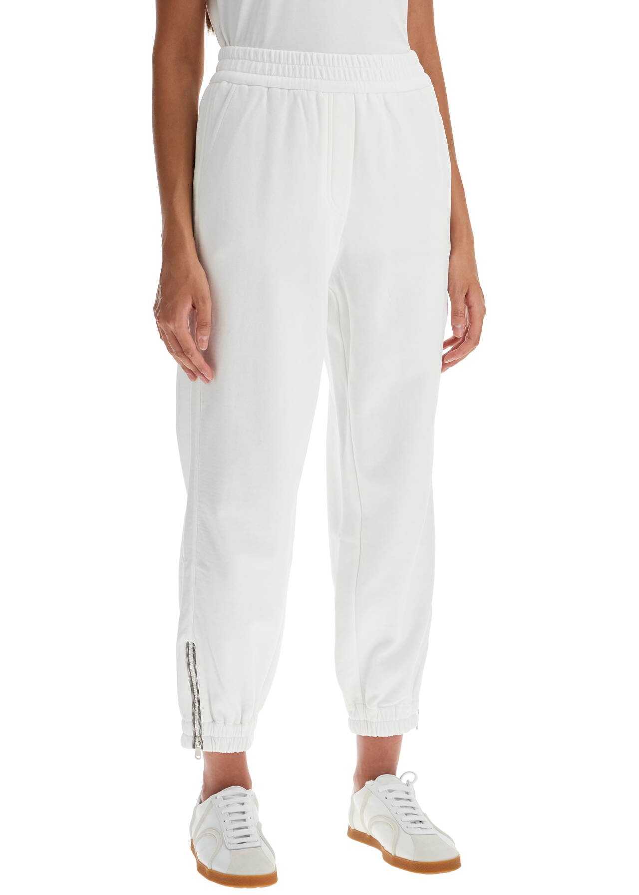 These Brunello Cucinelli joggers are made of pure cotton sgarzato jersey, embellished with sparkling monile embroidery on the elasticized cropped hem and zip opening. They feature a high and stretchy waistband, slanted front pockets, and welt back pockets. The relaxed fit adds to their comfort and style. The model is 177 cm tall and wears size XS.