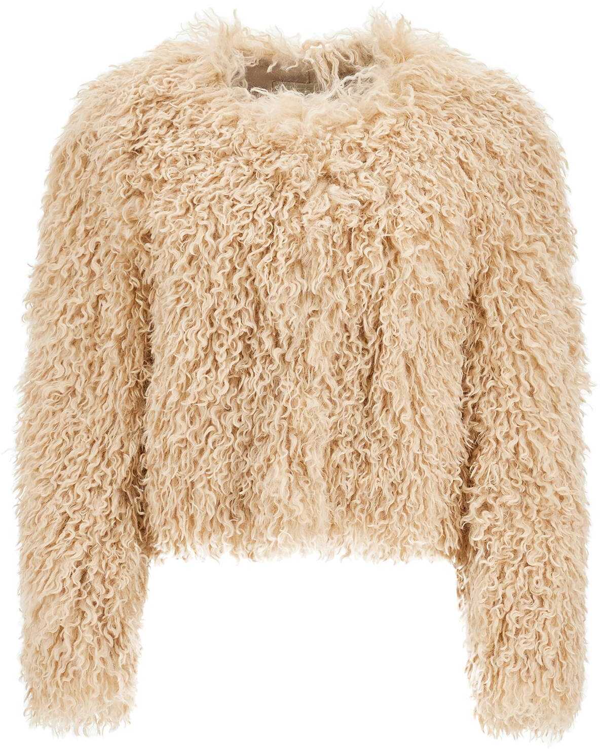 This Isabel Marant short coat has a straight cut and a round neckline. It is made of synthetic fur with side pockets and a central closure with hooks. The lining is made of cotton. The model is 177 cm tall and wears size FR 36.
