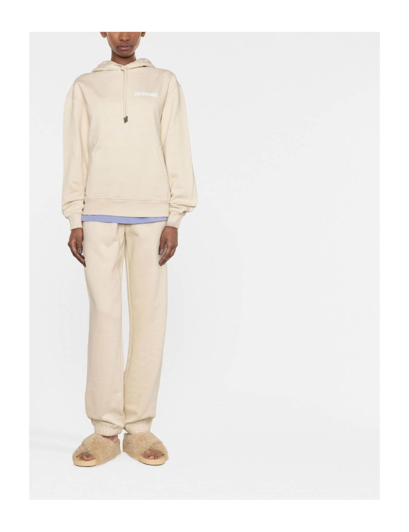 - Le Jogging track pants from JACQUEMUS featuring light beige, organic cotton, logo print at the leg, elasticated waistband, two side slit pockets, rear zip-fastening pocket and elasticated ankles. When buying this unisex item, keep in mind that it is graded in standard men's sizing.. POSITIVELY CONSCIOUS: This Planet Conscious product is made from at least 50% organic materials, which helps you support organic farming practices such as the restricted use of synthetic chemicals and genetically modified seeds, improved soil fertility and better livestock management..