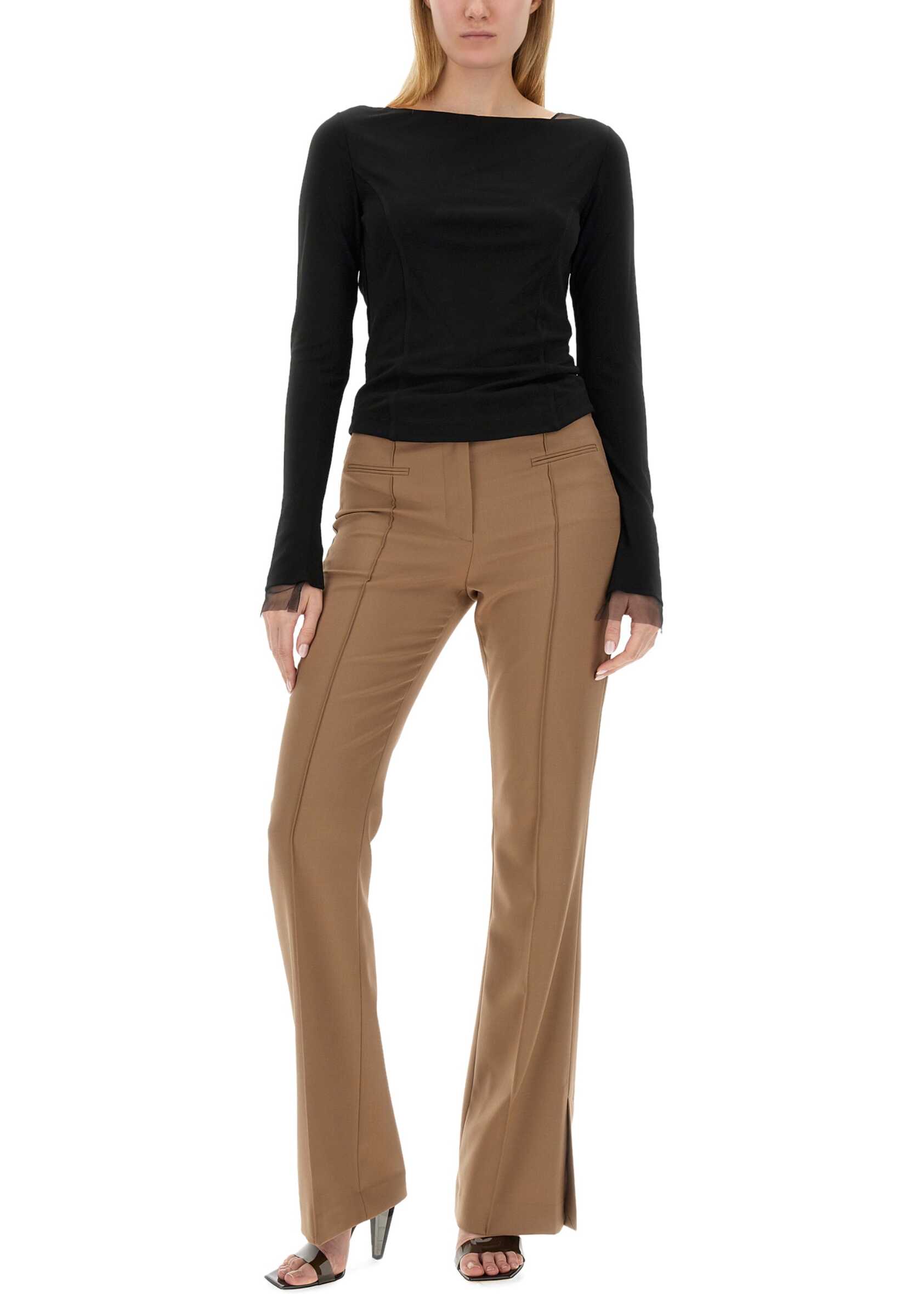 - BOOT CUT- 53% POLYESTER 43% VIRGIN WOOL 4% ELASTANE- MADE IN China- THE MODEL IS 180 CM TALL AND WEARS SIZE 2 US