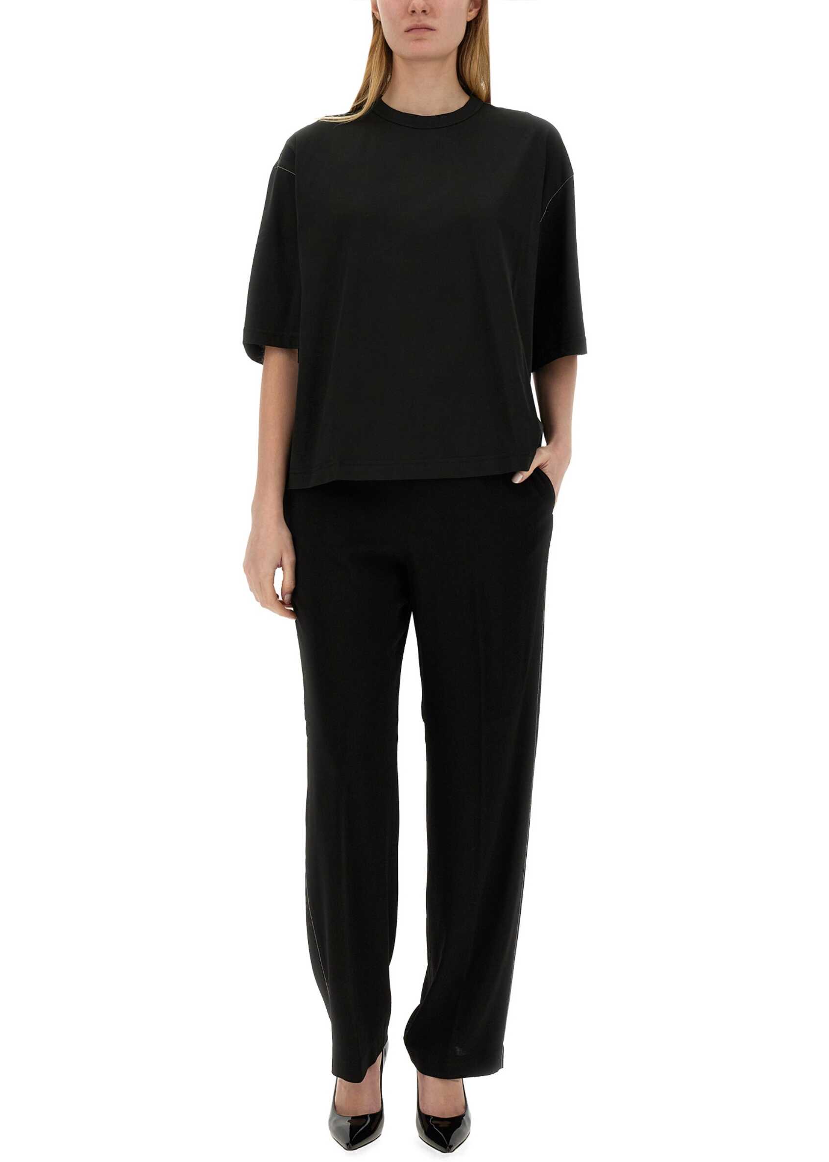 - 96% VISCOSE 4% ELASTANE- MADE IN Italia- THE MODEL IS 180 CM TALL AND WEARS SIZE 40 IT