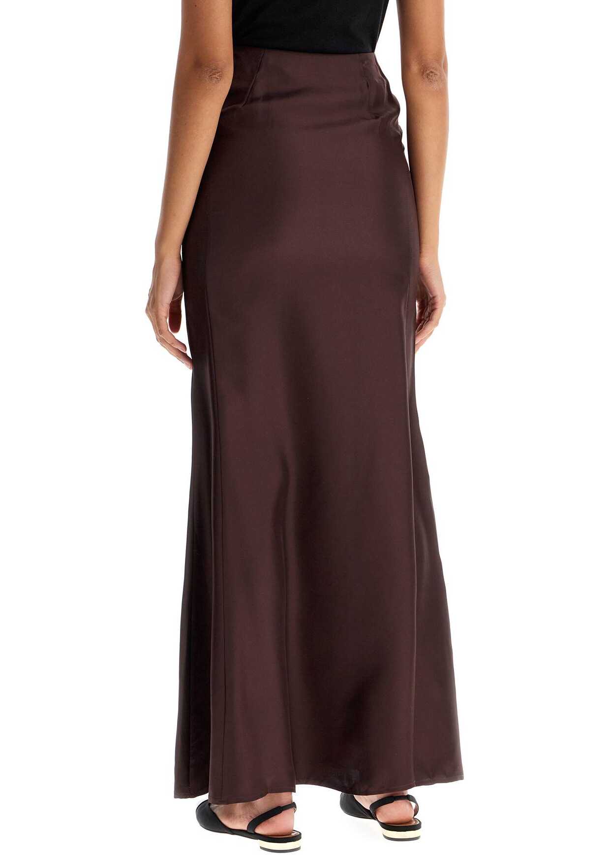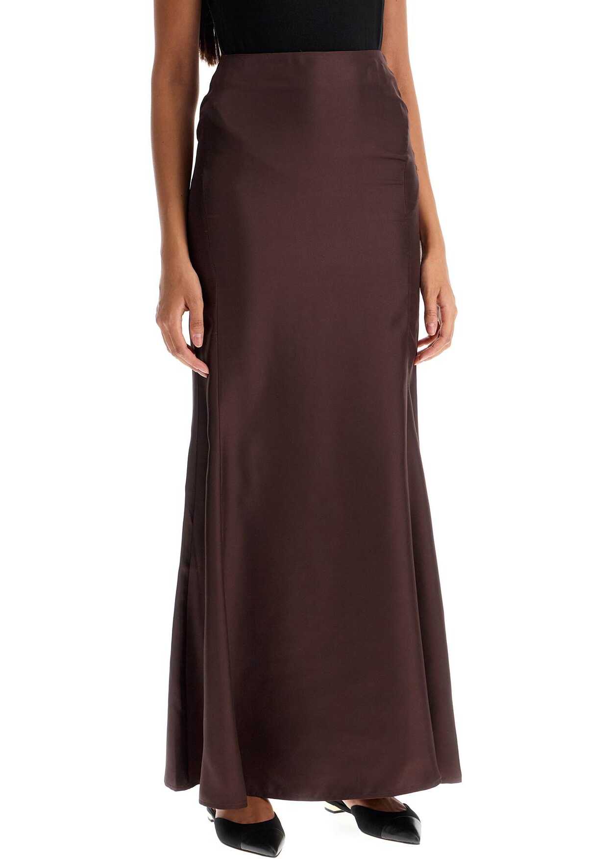This Dalupiri skirt from LouLou Studio is made of shiny silk twill and features a fitted high-waisted cut with a flared hem. It has a concealed side zip closure. The model is 177 cm tall and wears size XS.