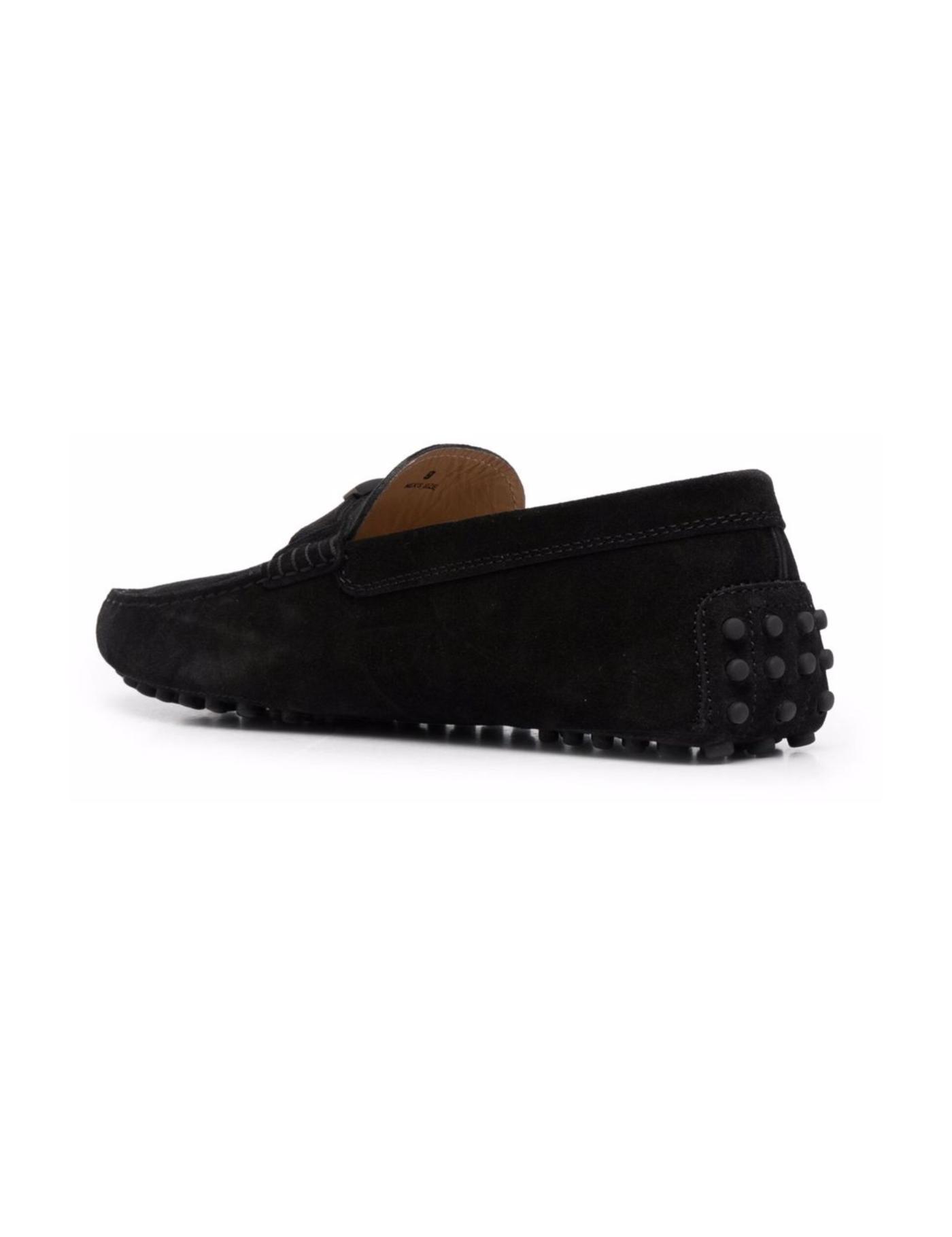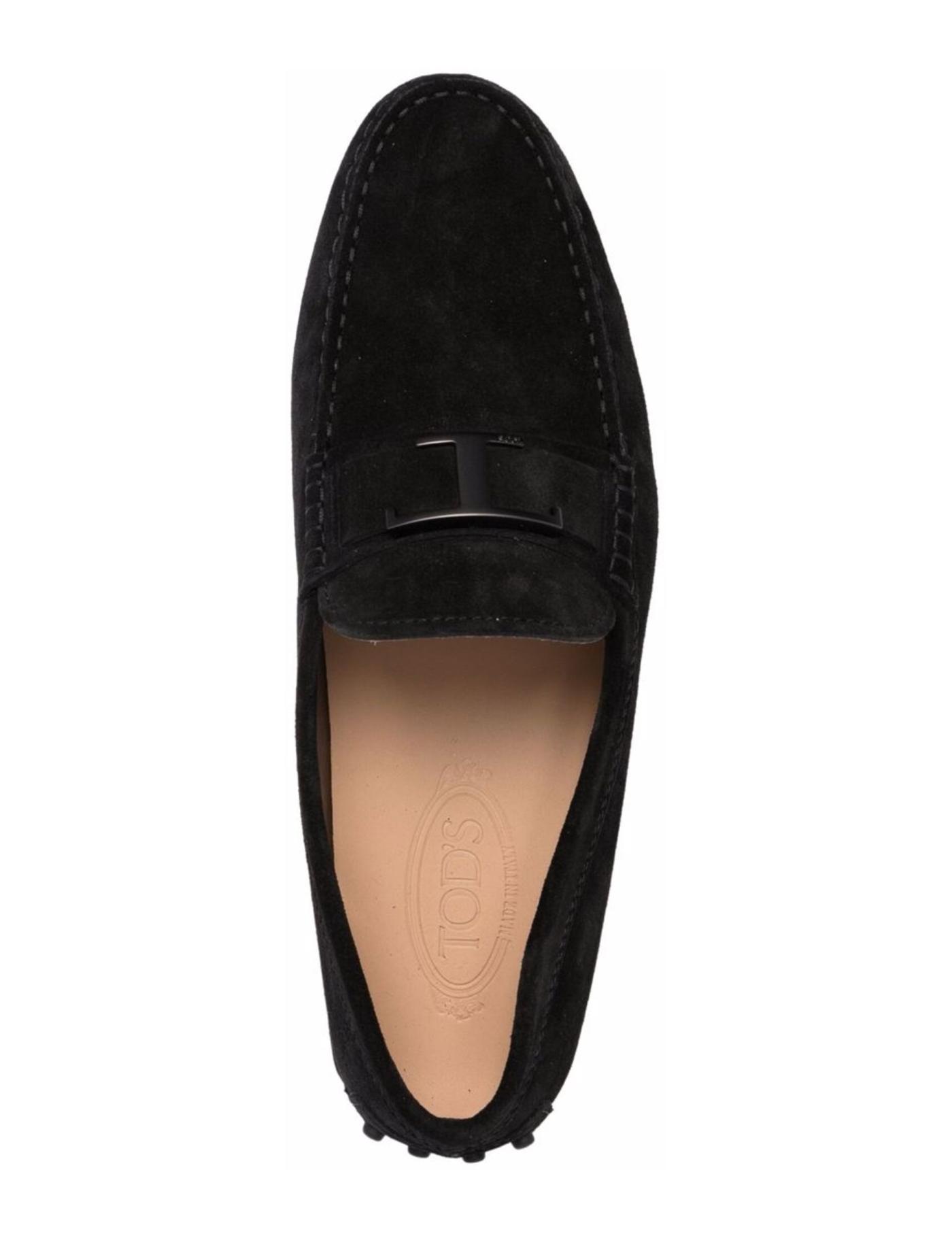 The Gommino driving shoes are hailed as Tod's most iconic silhouette, getting their name from the 133 rubber dots - or 'gommini' - that make up the sole. They appear here for SS22 crafted in suede in a black shade and finished with the signature T metal logo plaque on the front.