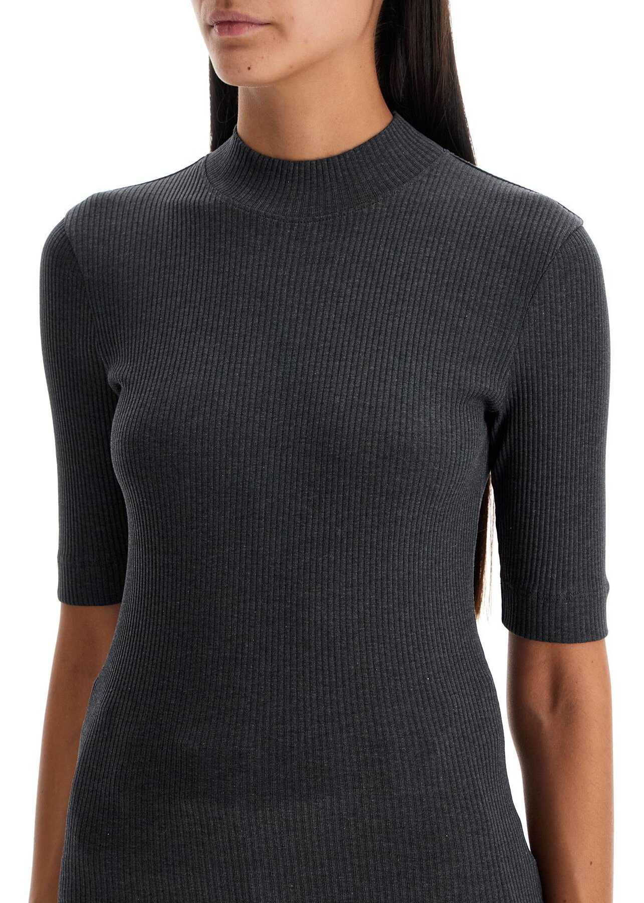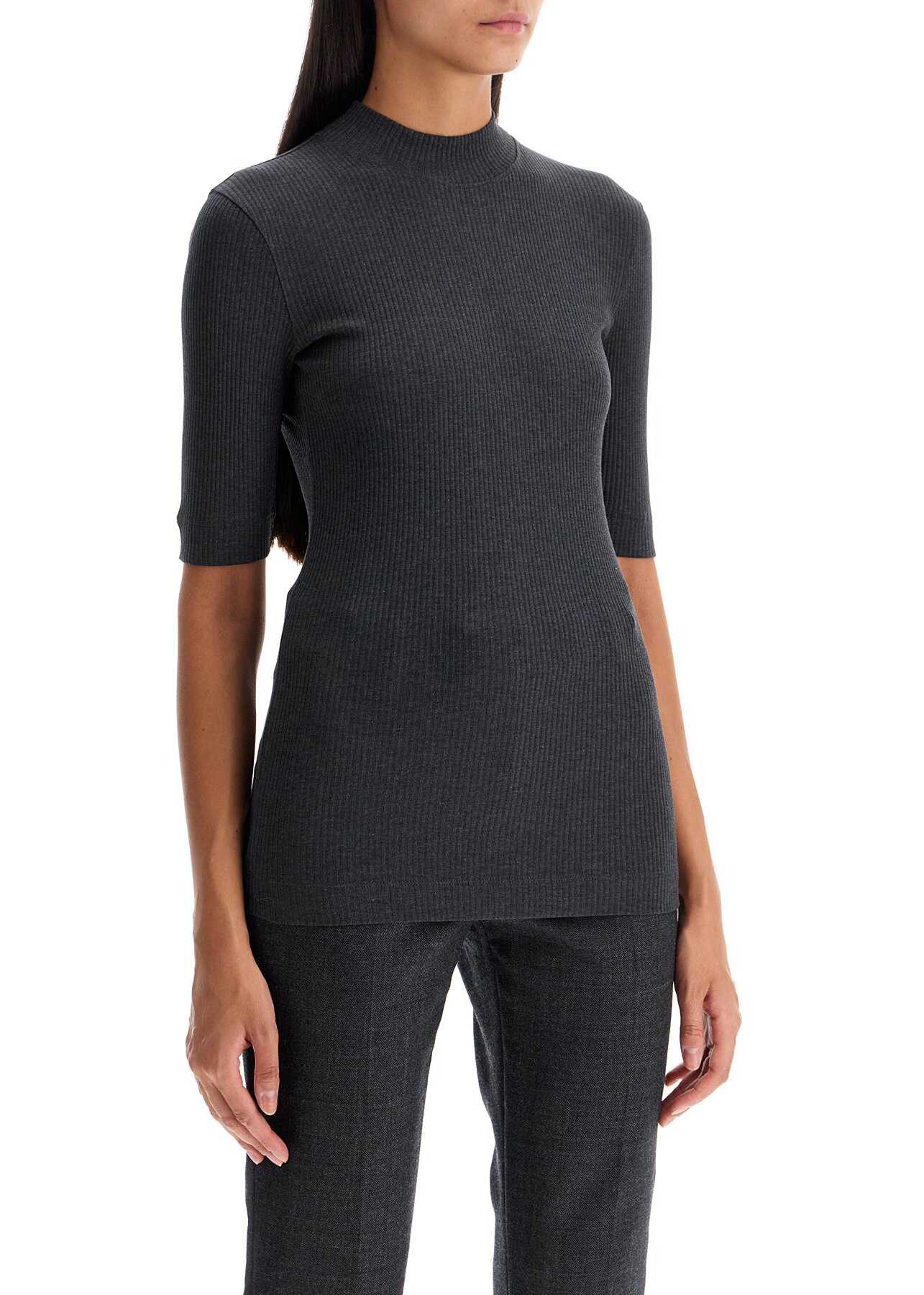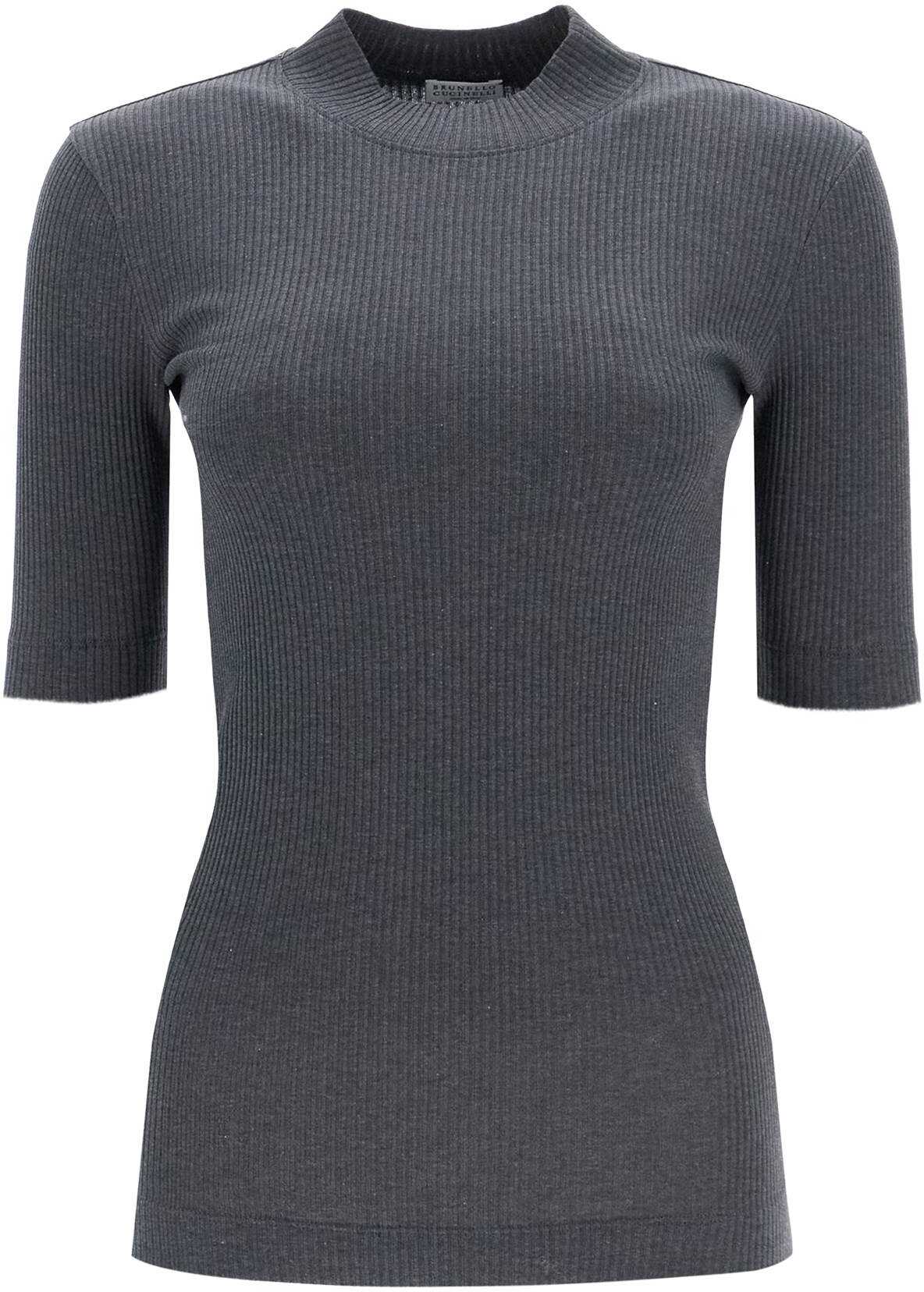 This short-sleeved T-shirt by Brunello Cucinelli is made of ribbed cotton jersey with a slim fit and high collar. The model is 177 cm tall and wears size XS.