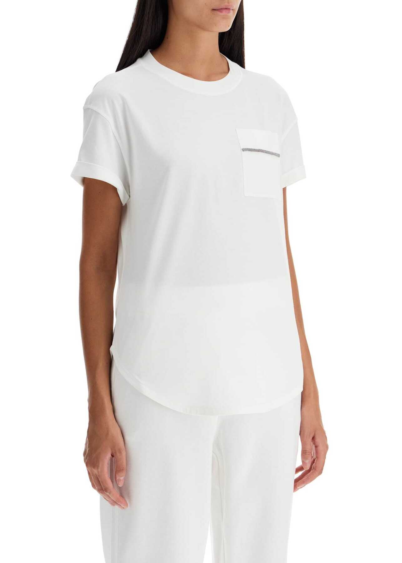 This Brunello Cucinelli T-shirt is made of cotton jersey and embellished with delicate monile embroidery on the pocket. It features a round neckline, rolled-up sleeves, rounded hem, and a regular but soft fit. The model is 177 cm tall and wears size XS.