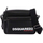 The Bob crossbody bag by Dsquared2 is made of textured leather with a contrasting embossed logo on the front pocket. It features a main compartment with a zip closure, a lined interior with a zip pocket, and an adjustable fabric shoulder strap. The metallic accessories have a ruthenium finish.