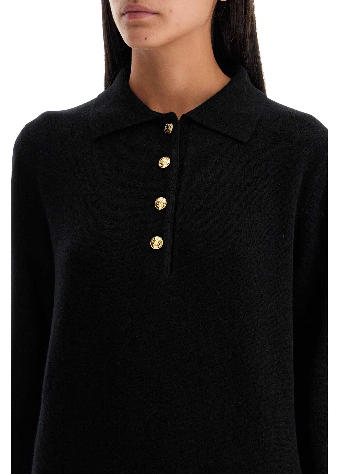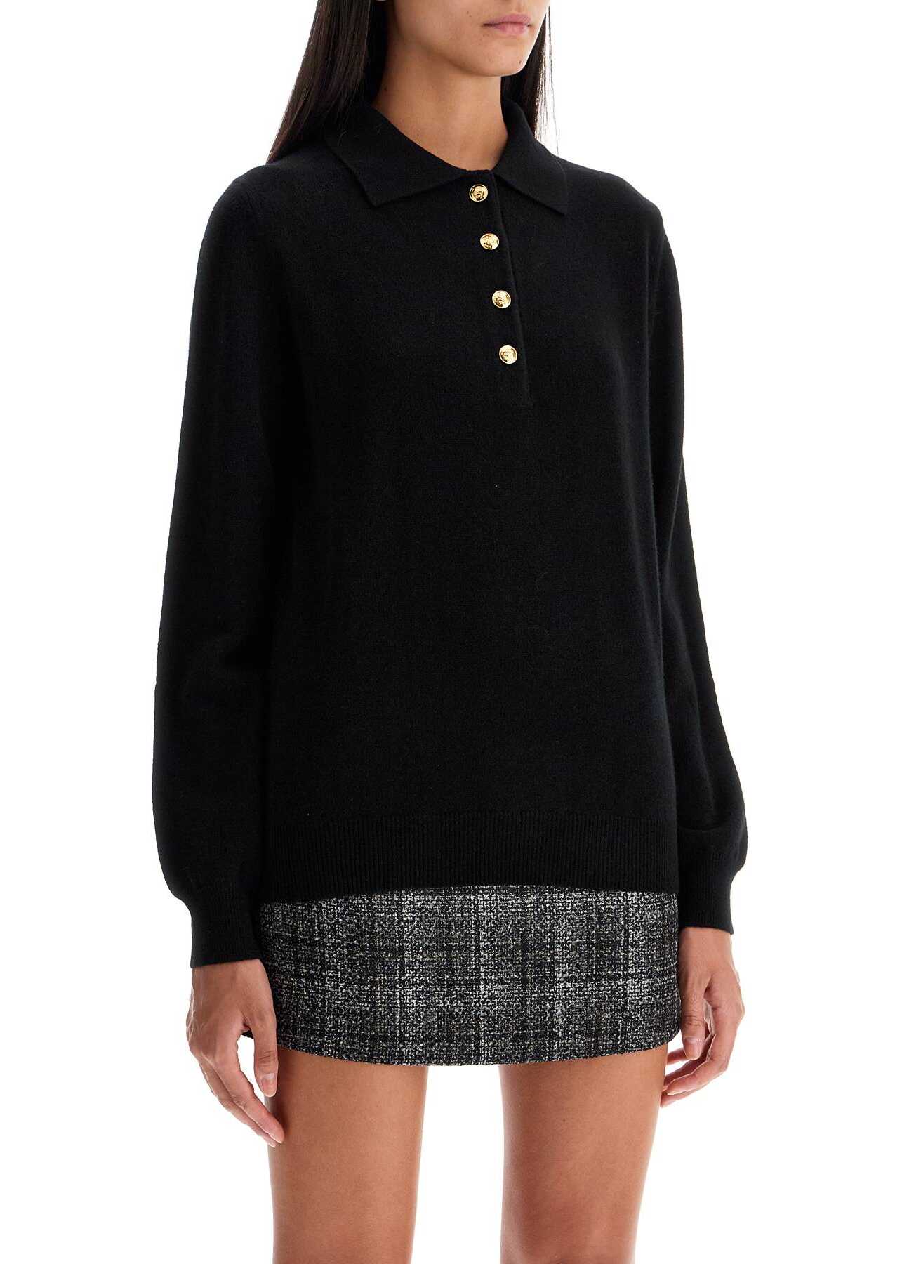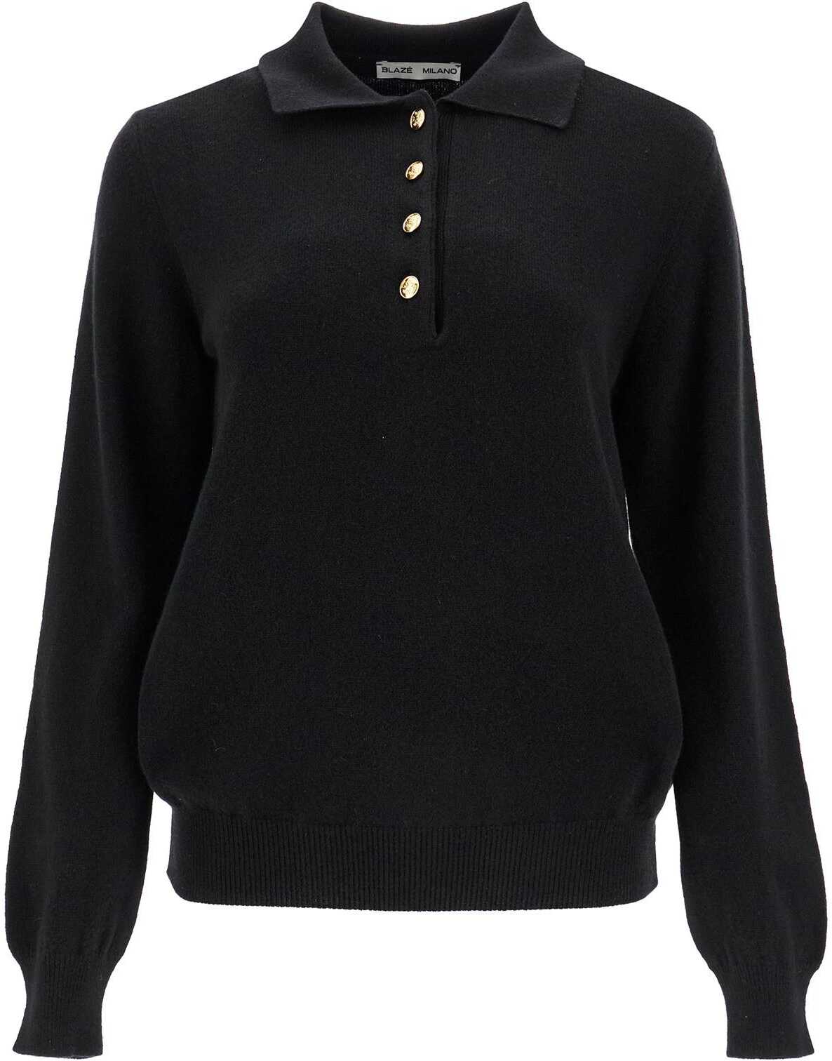 This Pullover Blazé Milano is made of wool and cashmere knit, featuring a polo design with a pointed collar and branded buttons. It has ribbed edges and a regular fit. The model is 177 cm tall and wears size 0.
