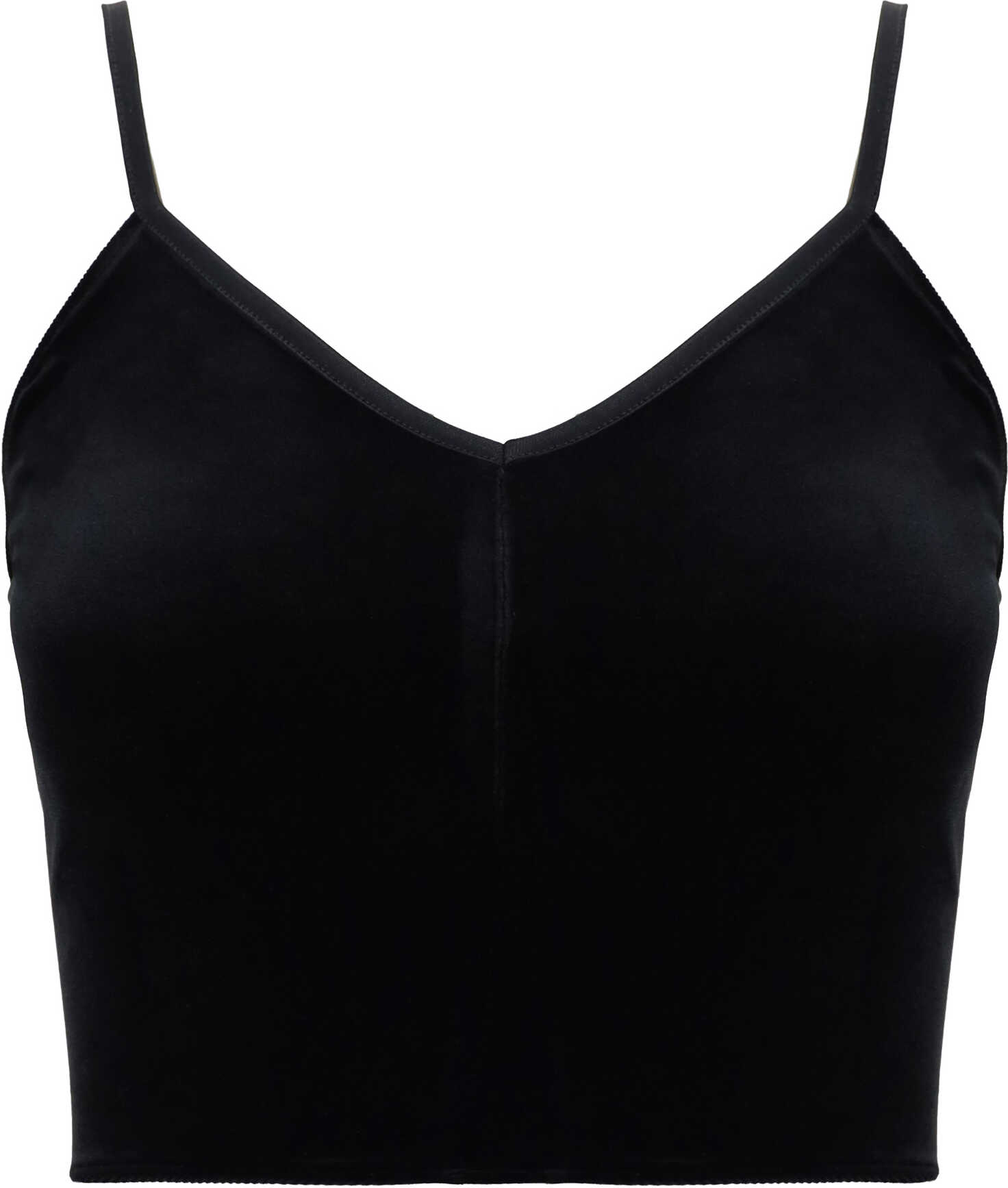 Top by Forte_Forte, cropped sleeveless pattern, thin straps, V-neck front, velvet design, monochrome pattern, slim fit.