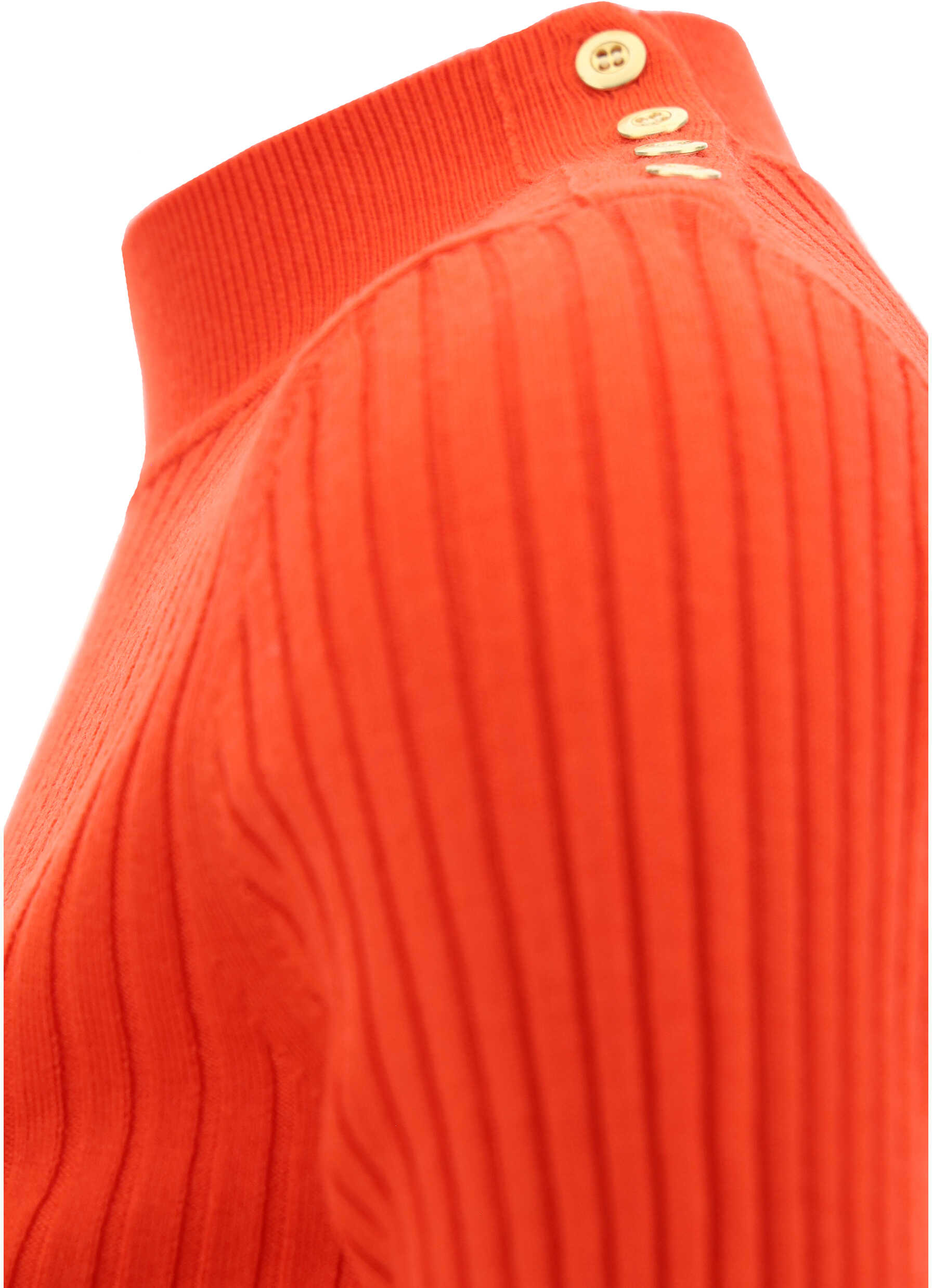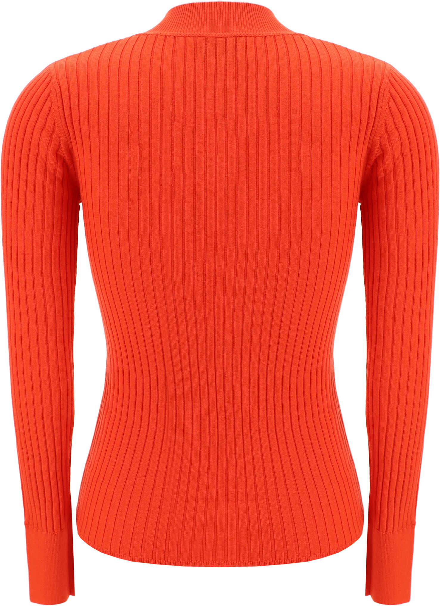 Virgin Wool Sweater by Forte_Forte, ribbed high collar, ribbed high cuffs, all-over rib design, monochrome pattern, close fit.