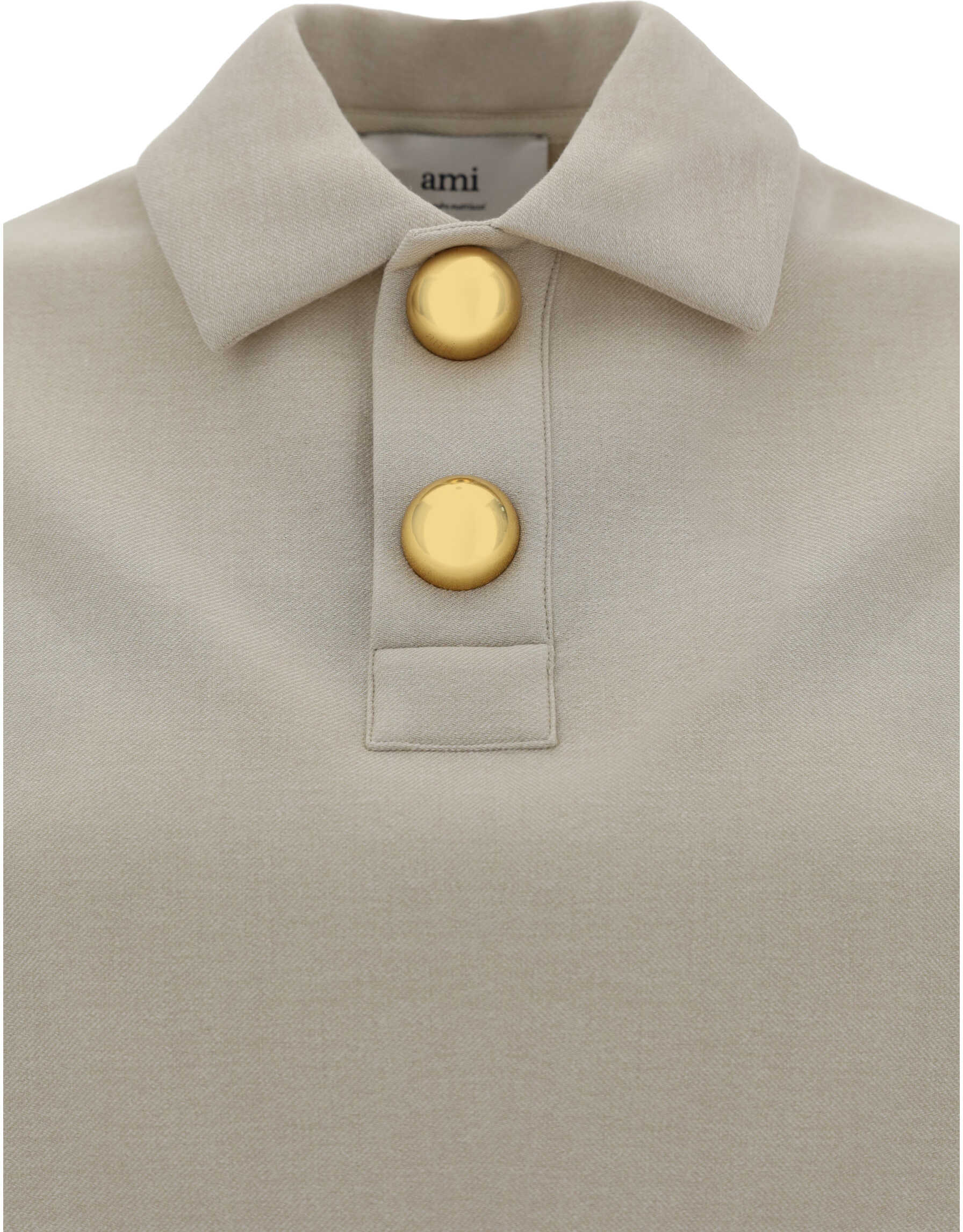 Luxury Long Sleeve Sweater by Ami Paris, classic collar, hemispherical buttons on front, two side slits, monochrome pattern, regular fit.