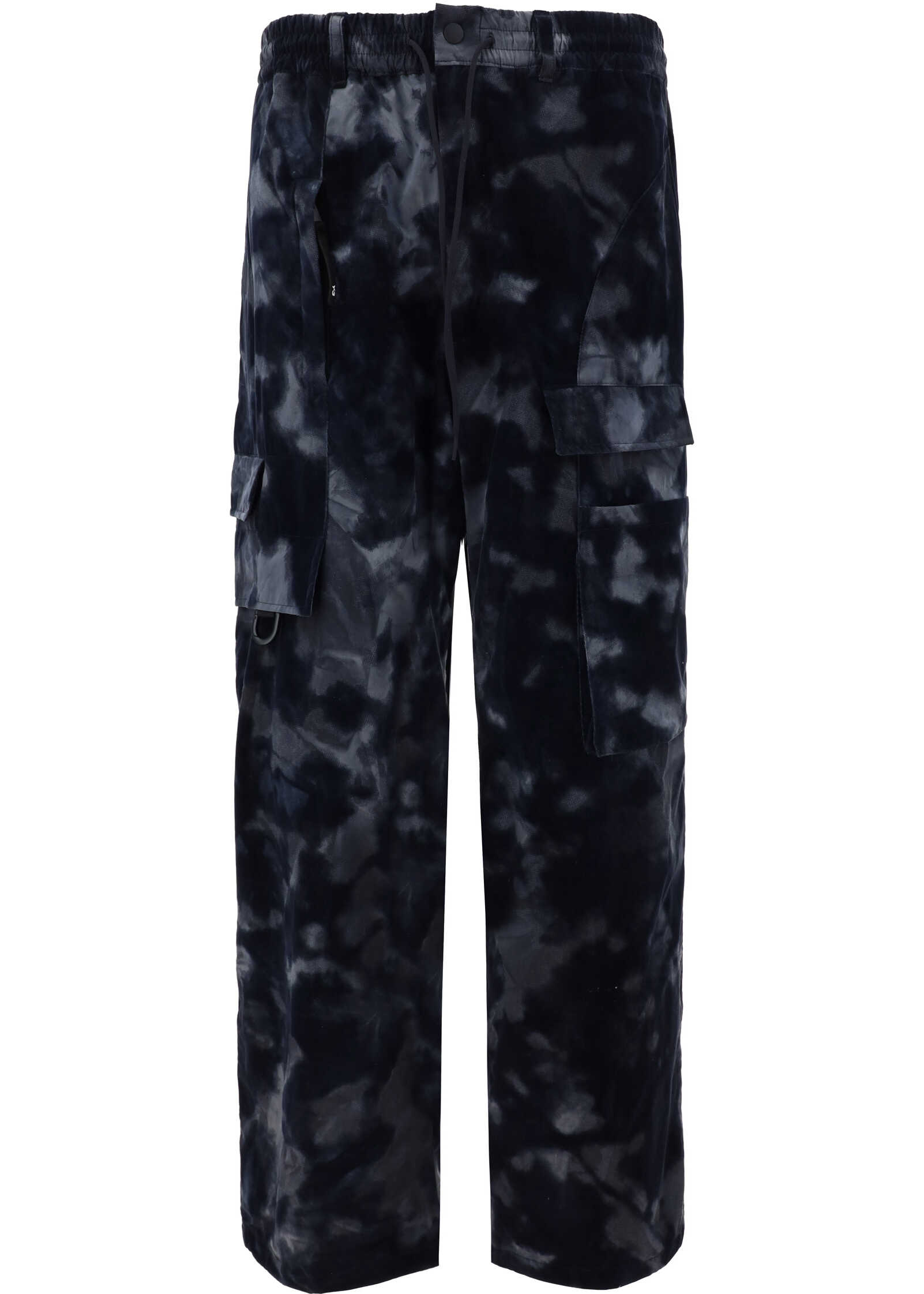 Pants by Y-3, elasticized waistband, front button and zipper closure, two side slash pockets, two welt pockets with patch flap on back, two patch flap pockets on front, vertical welt pocket with zipper on front, waistband loops, vintage speckled effect design, adjustable hem with inside drawstring, regular fit.