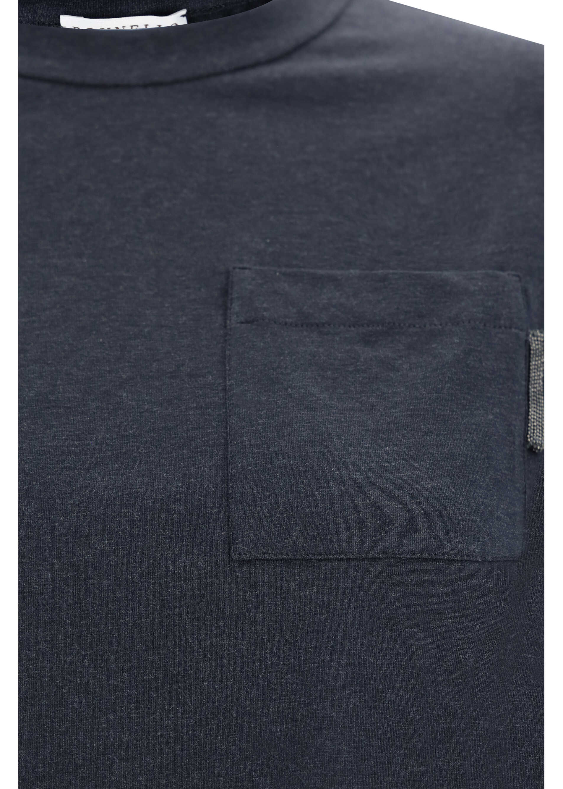 Cotton T-Shirt by Brunello Cucinelli featuring a front patch welt pocket with the brand's iconic shiny jewel detail, turn-up hem sleeves, monochrome pattern, regular fit.