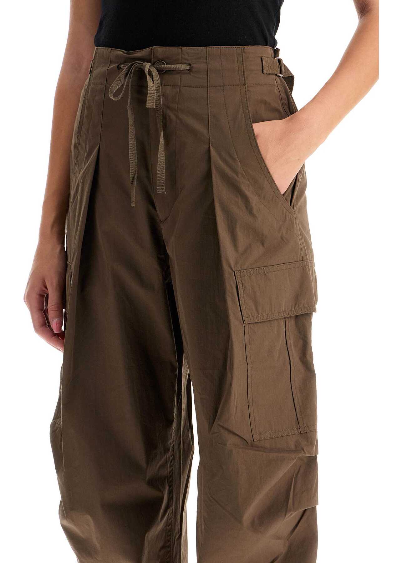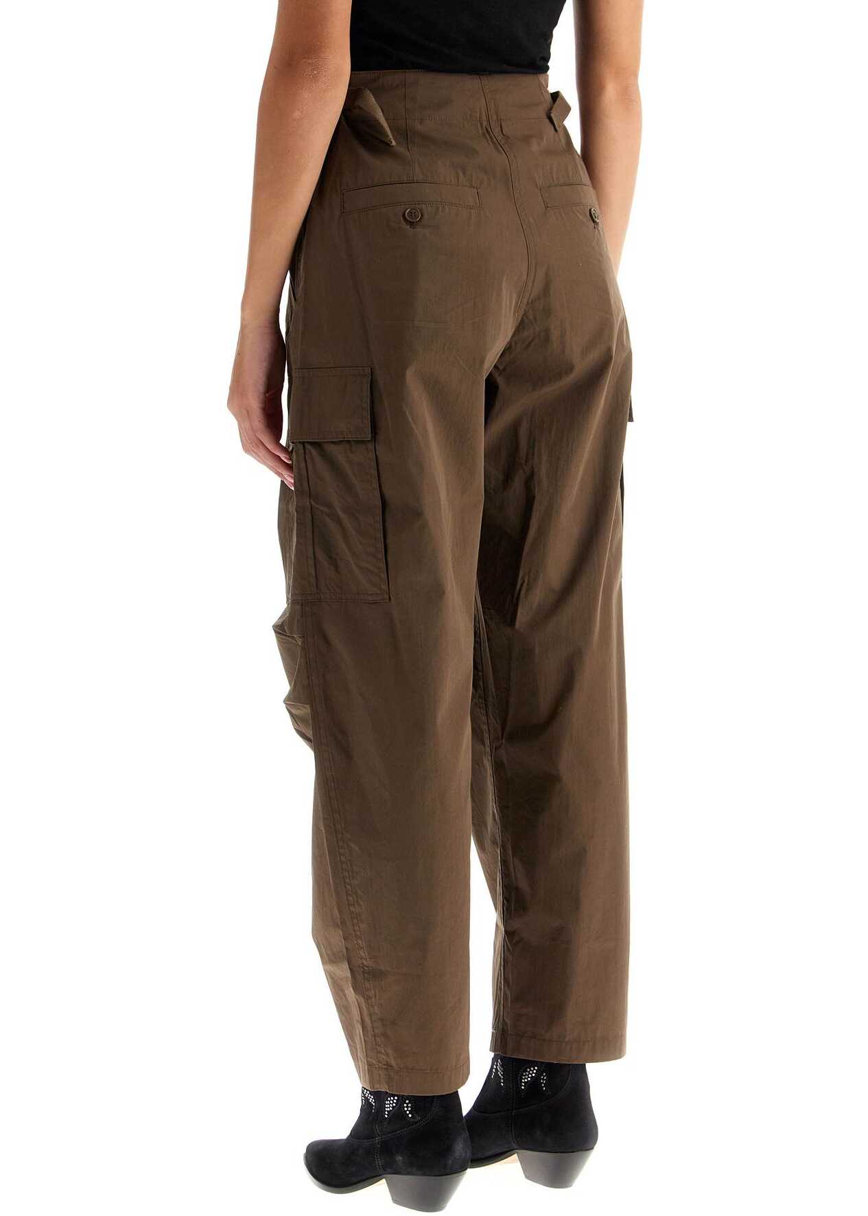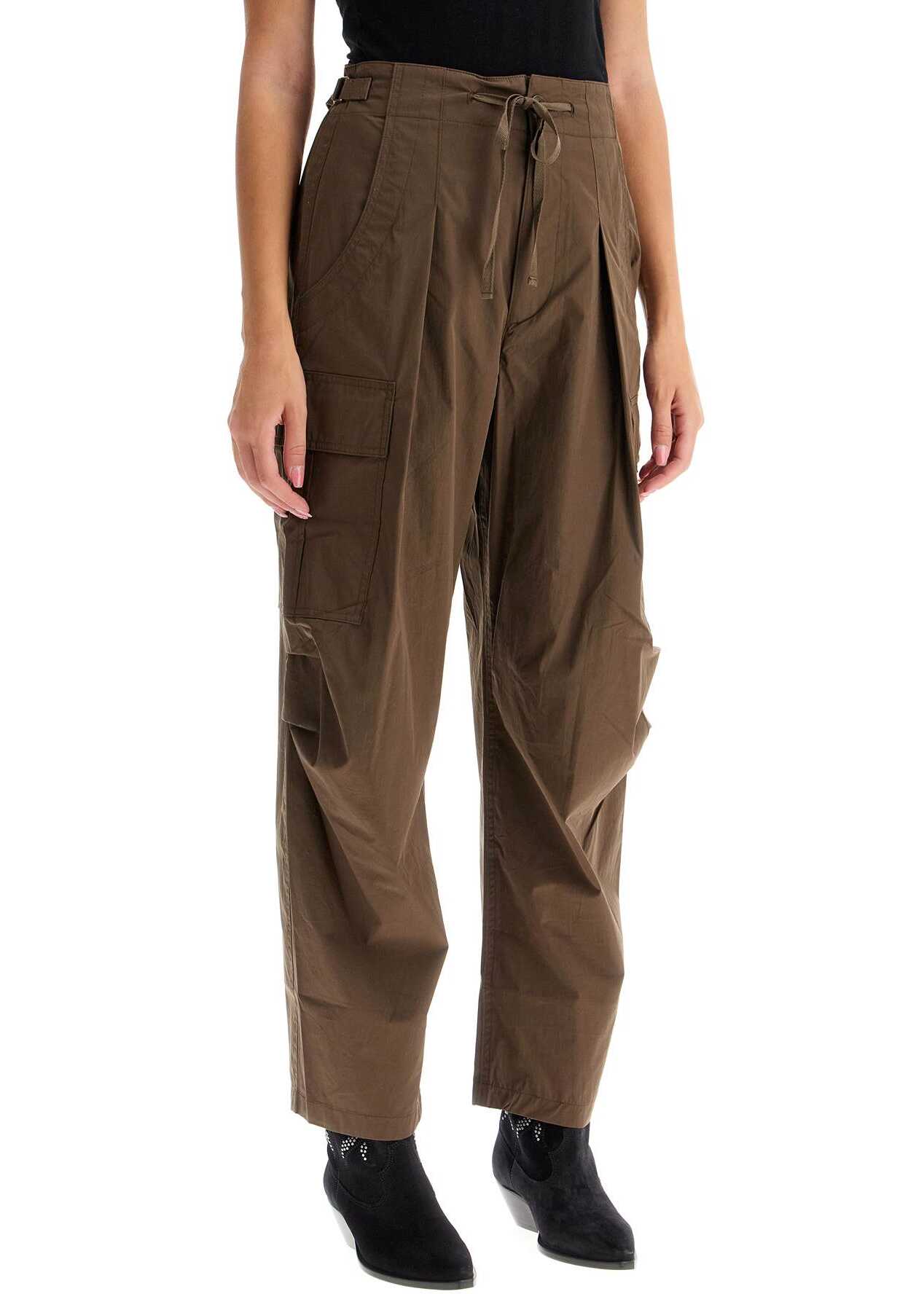 The Rebecca cargo pants by Isabel Marant are made of lightweight organic cotton blend poplin, featuring a wide and tapered leg with cargo pockets on the sides. The waist is adjustable with drawstrings and ribbon straps on the hips. Zipper fly and button closure. Slanted pockets on the front and welt pockets on the back. Comfortable fit. Model is 177 cm tall and wears size FR 34.
