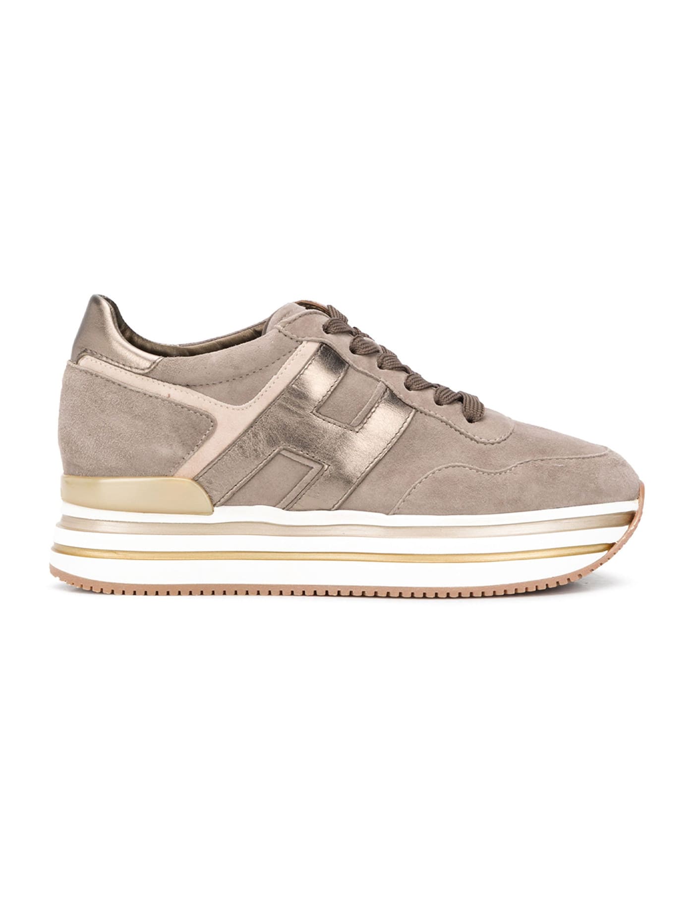 brown suede round toe front lace-up fastening platform sole metallic finish HEEL: 5.5 Centimetres Sole height: 3.5 Centimetres