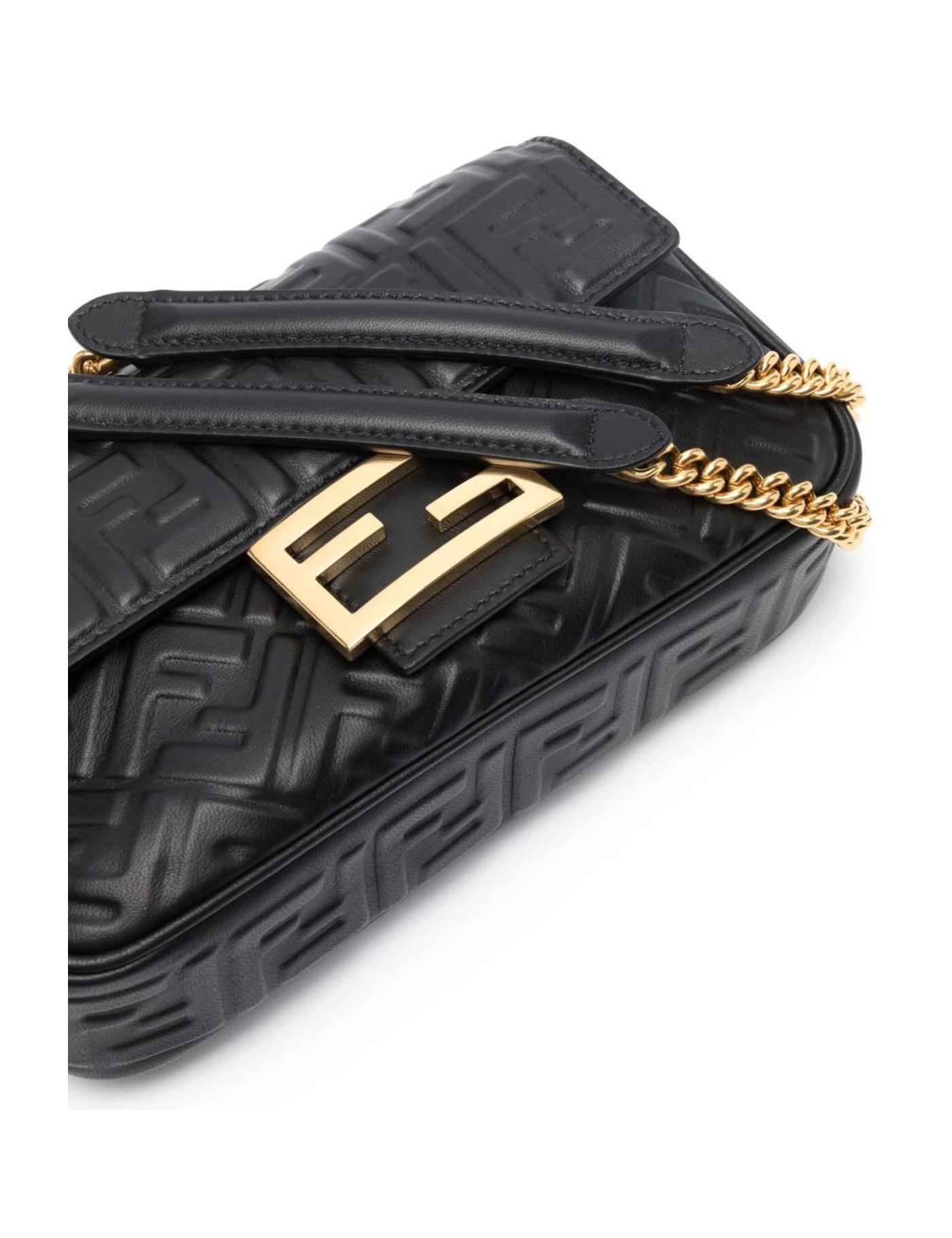 Named after its elongated structure, classic Fendi branding gives the Baguette Chain shoulder bag an iconic appeal. This medium iteration showcases the FF motif all-over with a 3D texture whilst it's finished with a FF clasp for an extra branded touch.