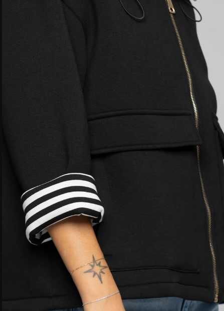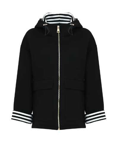 Viscose jacket by Kocca, with striped pattern on the hood and cuffs. Metal zip closure. Composition: 95% viscose 5% elastane