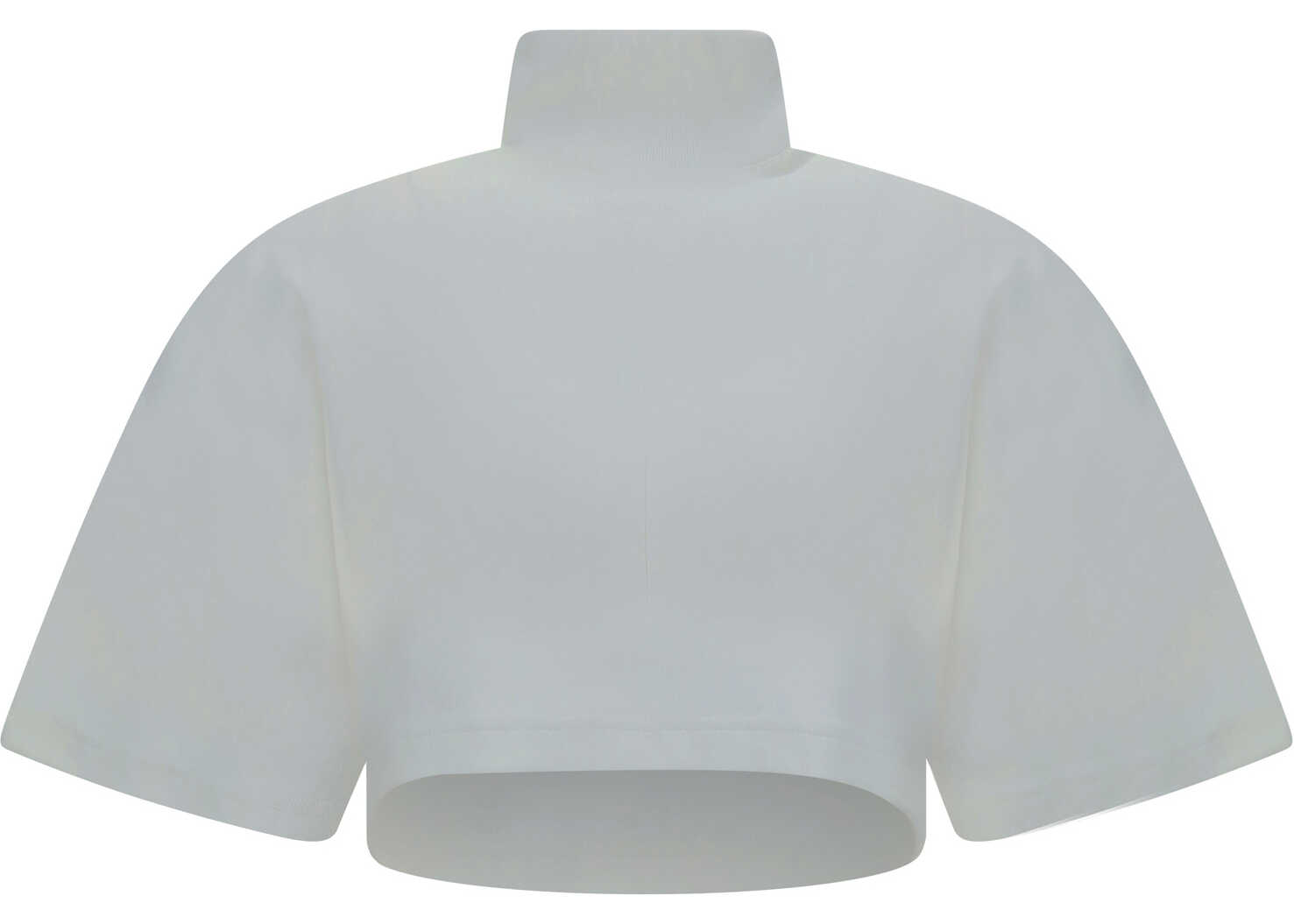 Cotton Top by Alaïa, featuring a cropped design, a ribbed high neck, a back snap button closure, a short sleeve design, a monochrome pattern, and a regular fit.