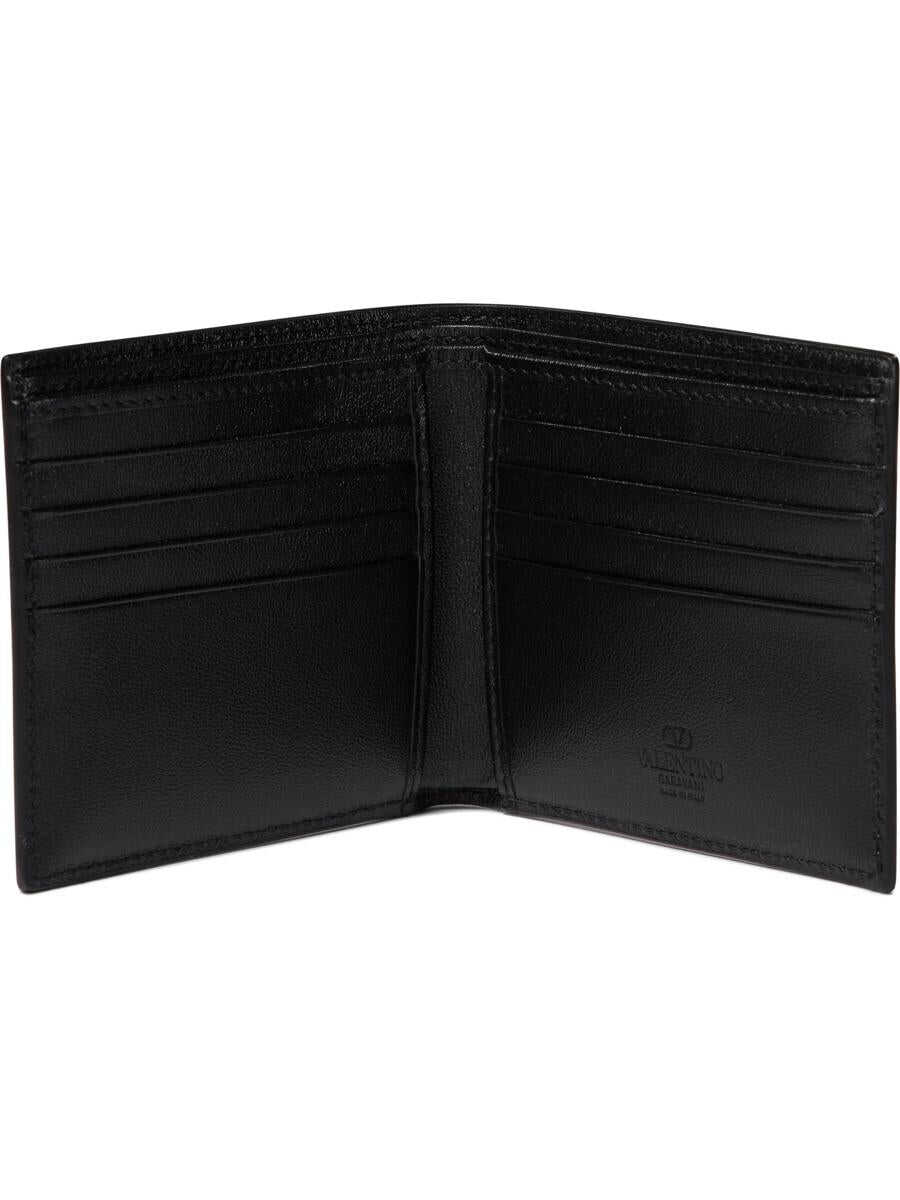 Valentino Garavani's "Rockstud" wallet is the perfect accessory for the man who wants to combine luxury and practicality. Elegant and modern, this wallet reflects the distinctive and sophisticated character of Italian craftsmanship, a must-have for those who love to stand out. || - Black Ruthenium finish stud detail - Eight card compartments - One compartment for banknotes - Valentino Garavani logo - Dimensions: 11x10x2 cm || Perfect to pair with a black Valentino leather belt for a stylish, coordinated look. Complete your outfit with a modern-cut tailored jacket and classic loafers for a flawless look. Materials: Leather