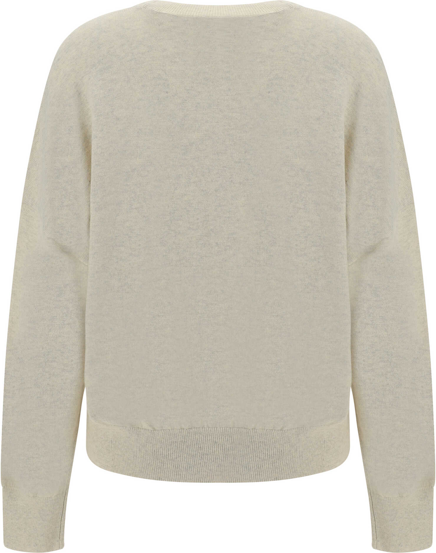 Cotton Marisans Sweater by Marant Etoile, featuring ribbed crew neck, ribbed hem, ribbed cuffs, contrasting iconic brand logo on front, monochrome pattern, regular fit.
