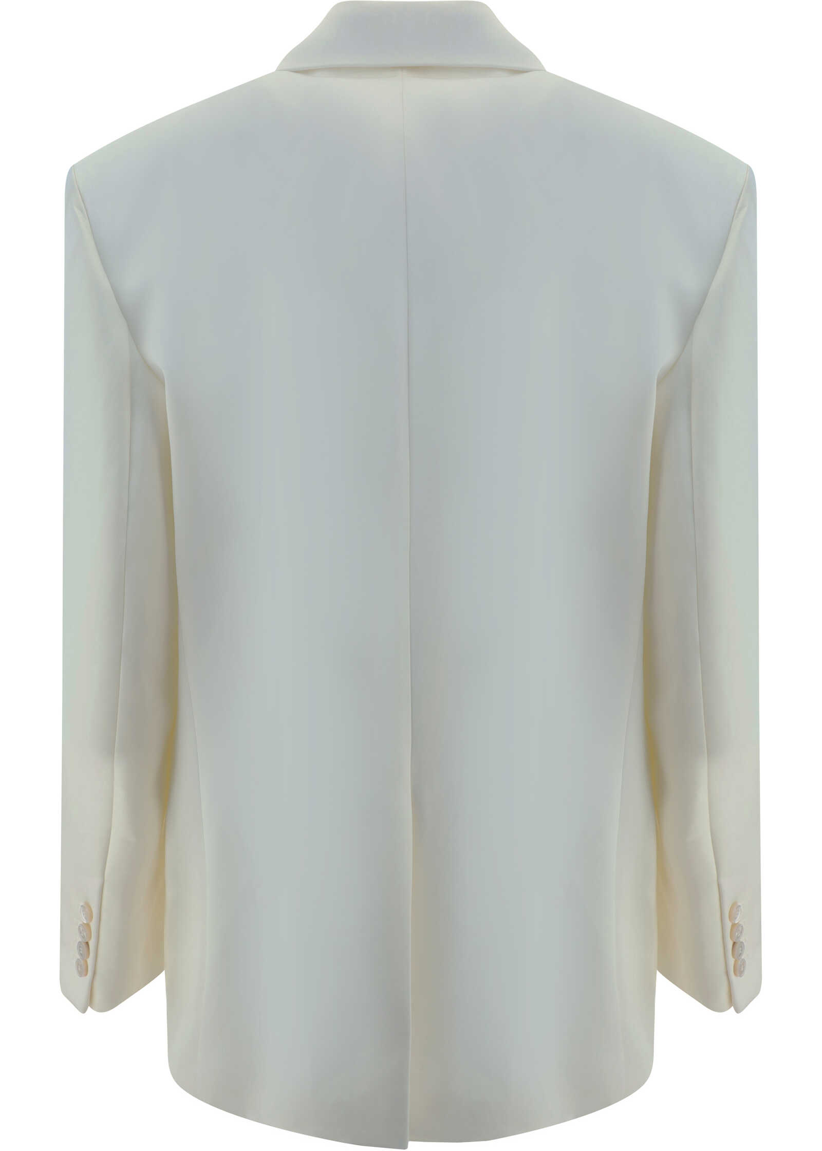 Cotton Classic Blazer Jacket by Magda Butrym features tone-on-tone front button closure, two side flap welt pockets, one front welt pocket, back slit, structured shoulders, peaked lapels, and boyfriend fit.