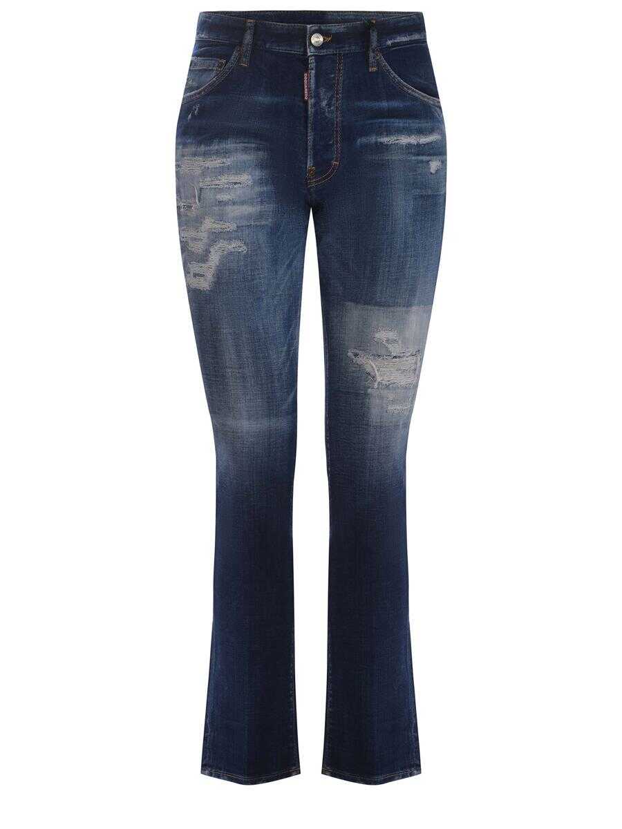 Jeans Dsquared2 made of Blue denim. Used wash. Micro-cracks and patches. Belt loops. Hidden button closure. Contrasting logo patch applied on the front. "D2" logo patch applied on the pocket. Cool Guy fit
