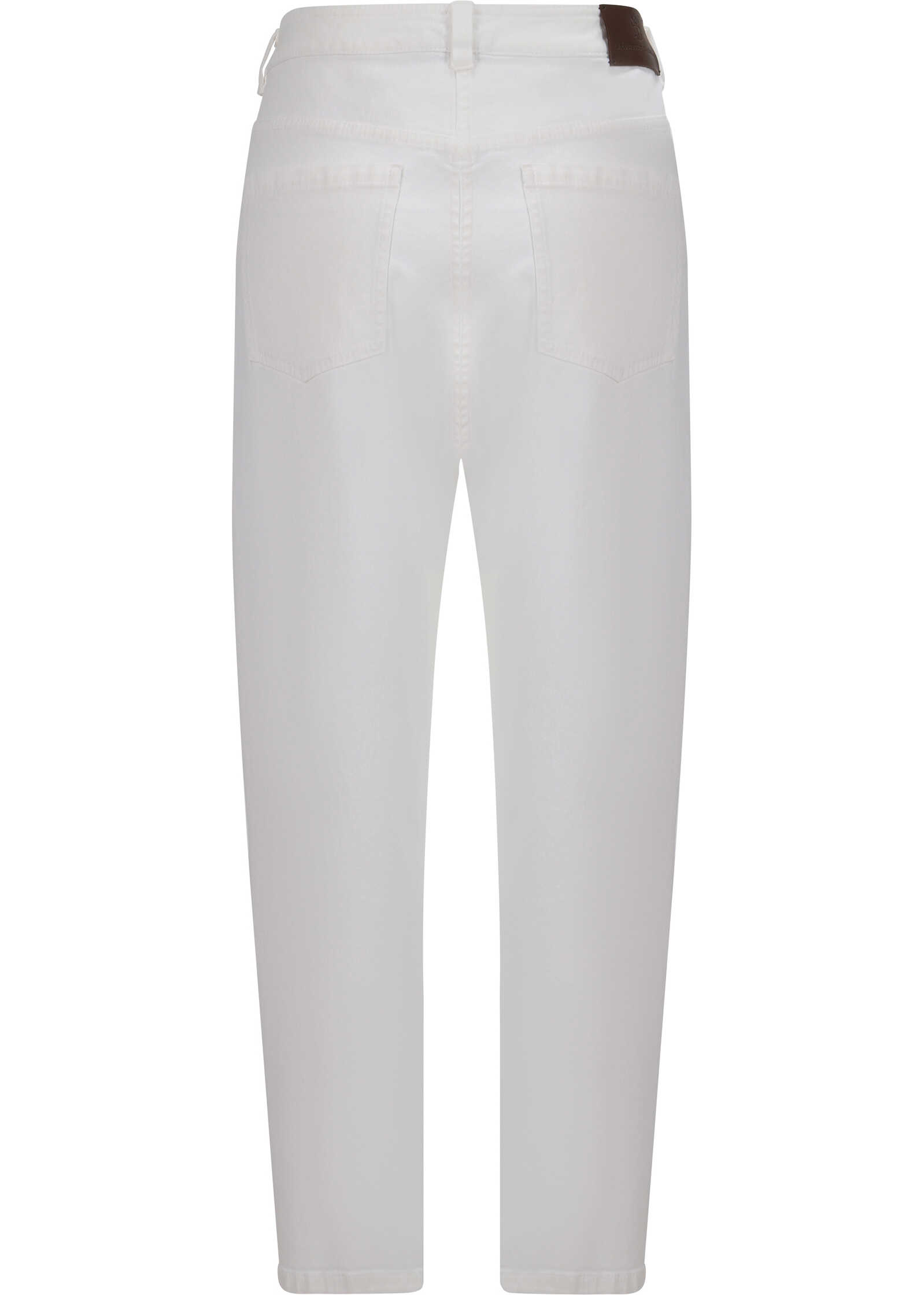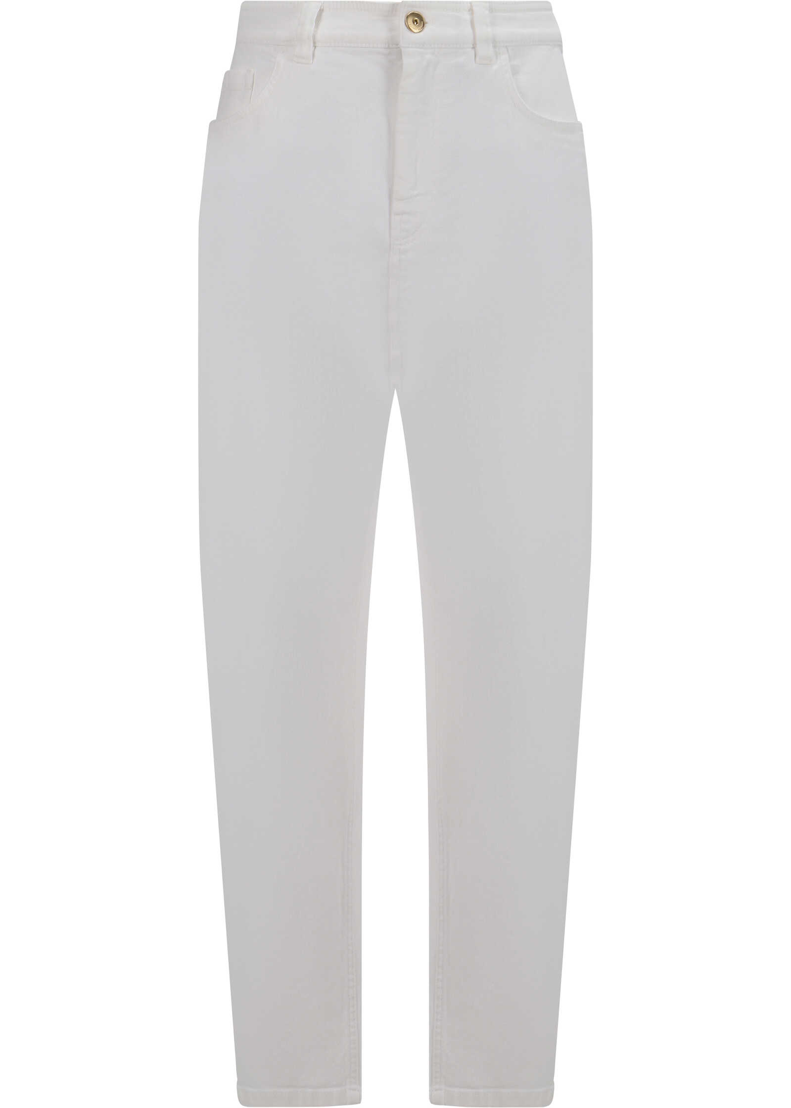 Cotton Denim Pants Brunello Cucinelli, five-pocket straight style, front button and zipper closure, belt loops for waistband, iconic leather patch with brand signature pressure-printed applique at back.