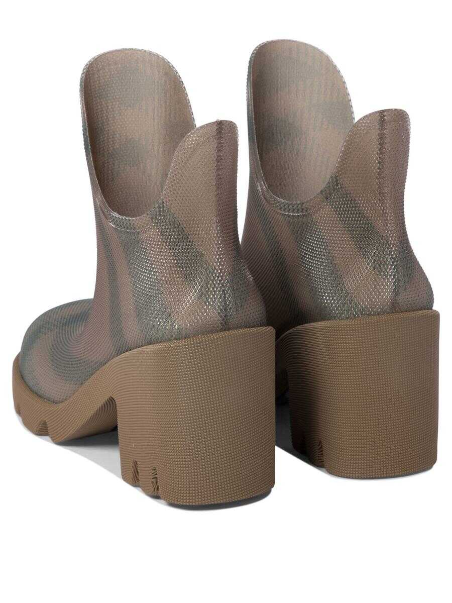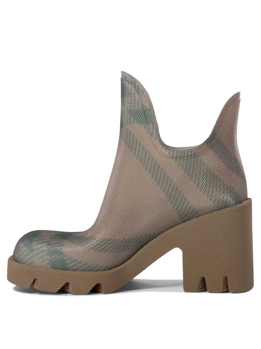 Burberry's "Marsh Check" rain boots are an ideal choice for the modern woman who wants to combine style and function. Made of clear rubber with Check lining, these ankle boots are inspired by traditional rubber boots but add an unmistakable touch of elegance with archival Burberry lettering on the thick sole.