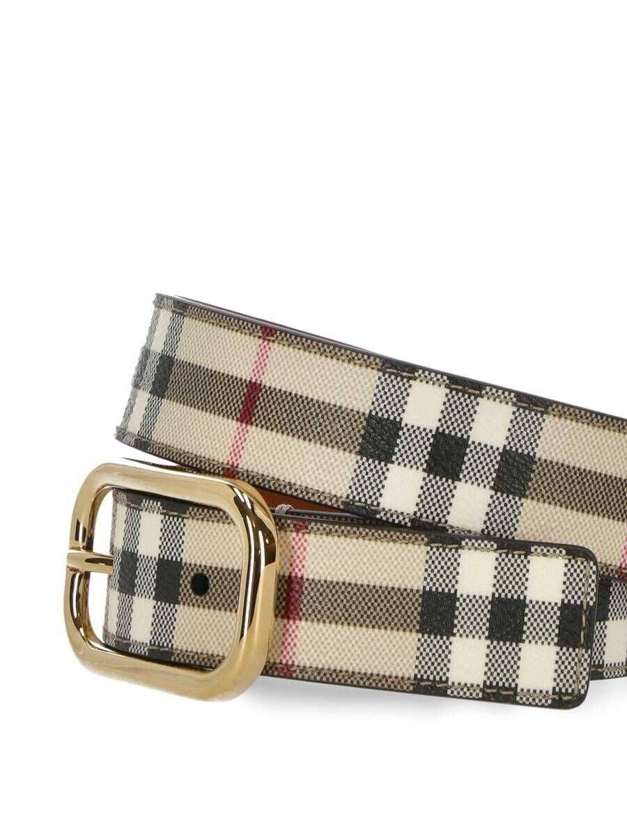 light beige leather Vintage Check pattern logo-engraved pin-buckle fastening punched holes debossed internal logo adjustable fit This piece comes complete with a protective dust bag. We've partnered with Good On You — an independent agency that rates how brands perform in relation to their impact on the planet, people and animals, with a multi-criteria rating simplified to a five points scale. In order to be awarded our conscious label, larger brands need to score a minimum of four out of five ('Good'), while smaller brands must score at least three out of five ('It's A Start'). This item comes from a brand rated three out of five ('It's A Start') by Good on You at the time it was added on FARFETCH. Please note, this is a brand-level rating and does not guarantee that this product is made with conscious materials. Learn more about what makes a product Conscious on our Conscious Criteria page Maximum Length: 79.0 Centimetres Minimum Length: 61.0 Centimetres WIDTH: 3.0 Centimetres