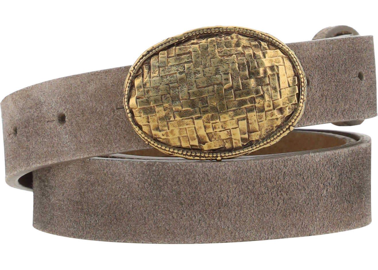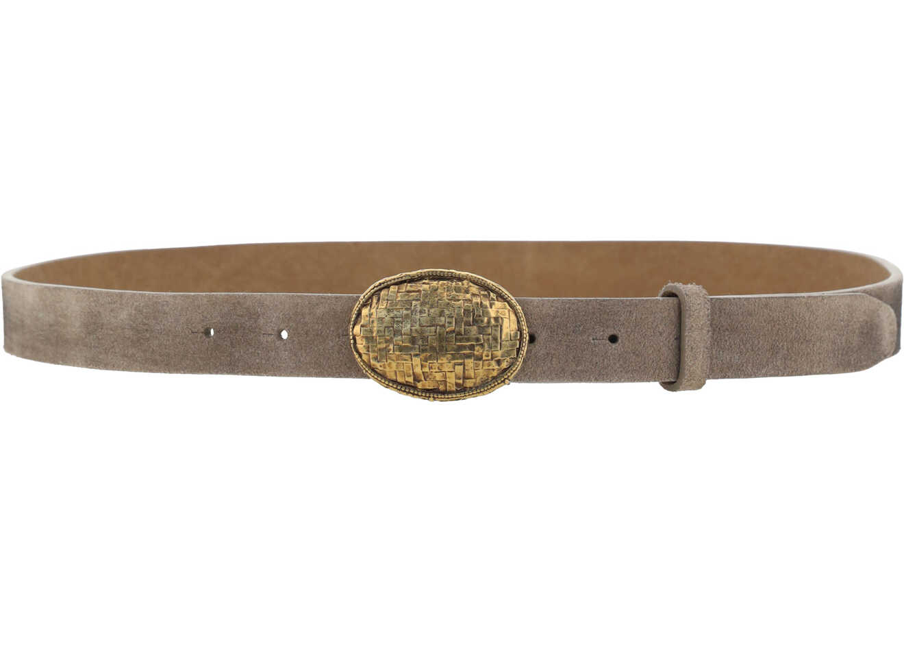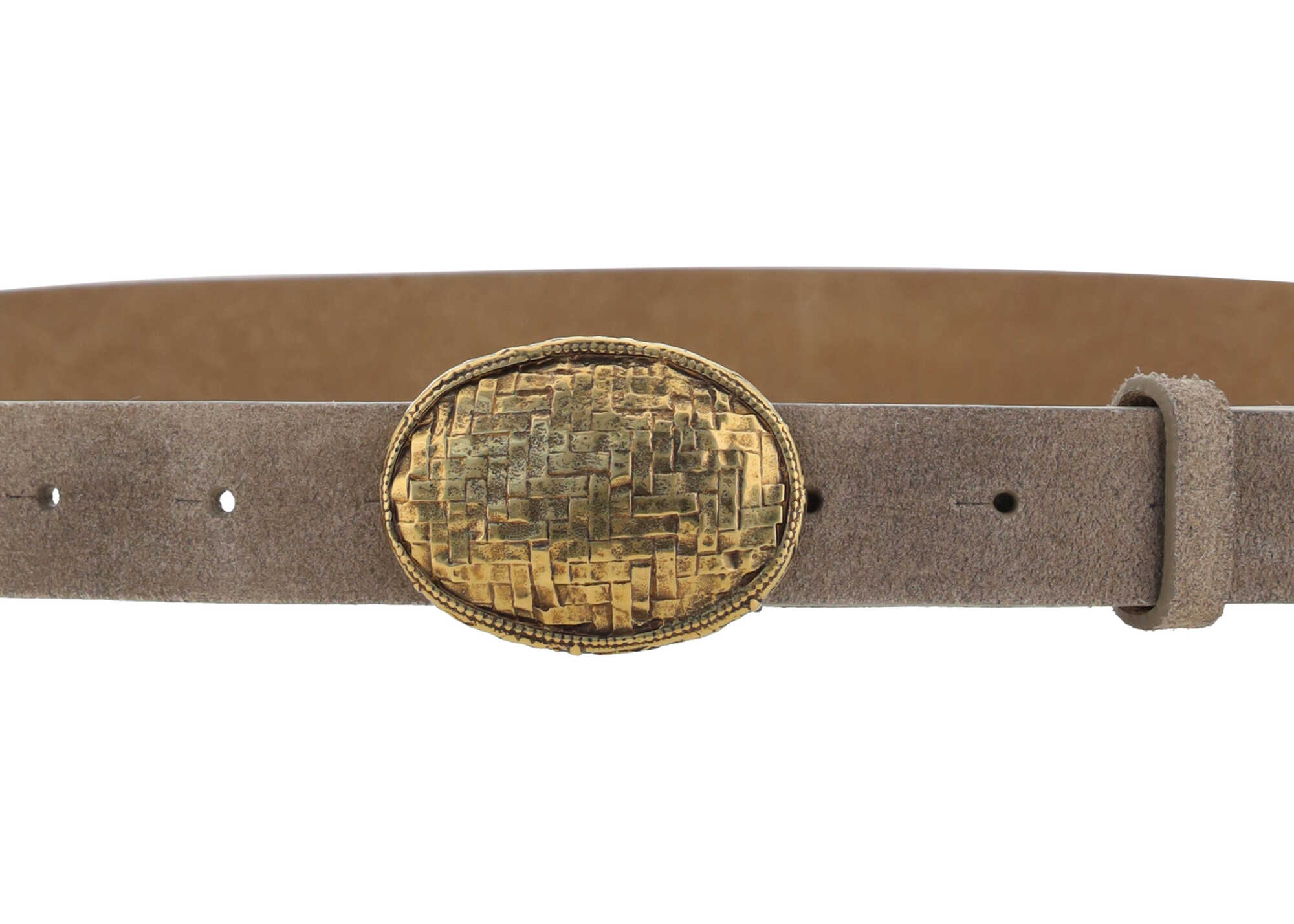 Leather Belt by Brunello Cucinelli, vintage effect leather design, oval brass buckle.
