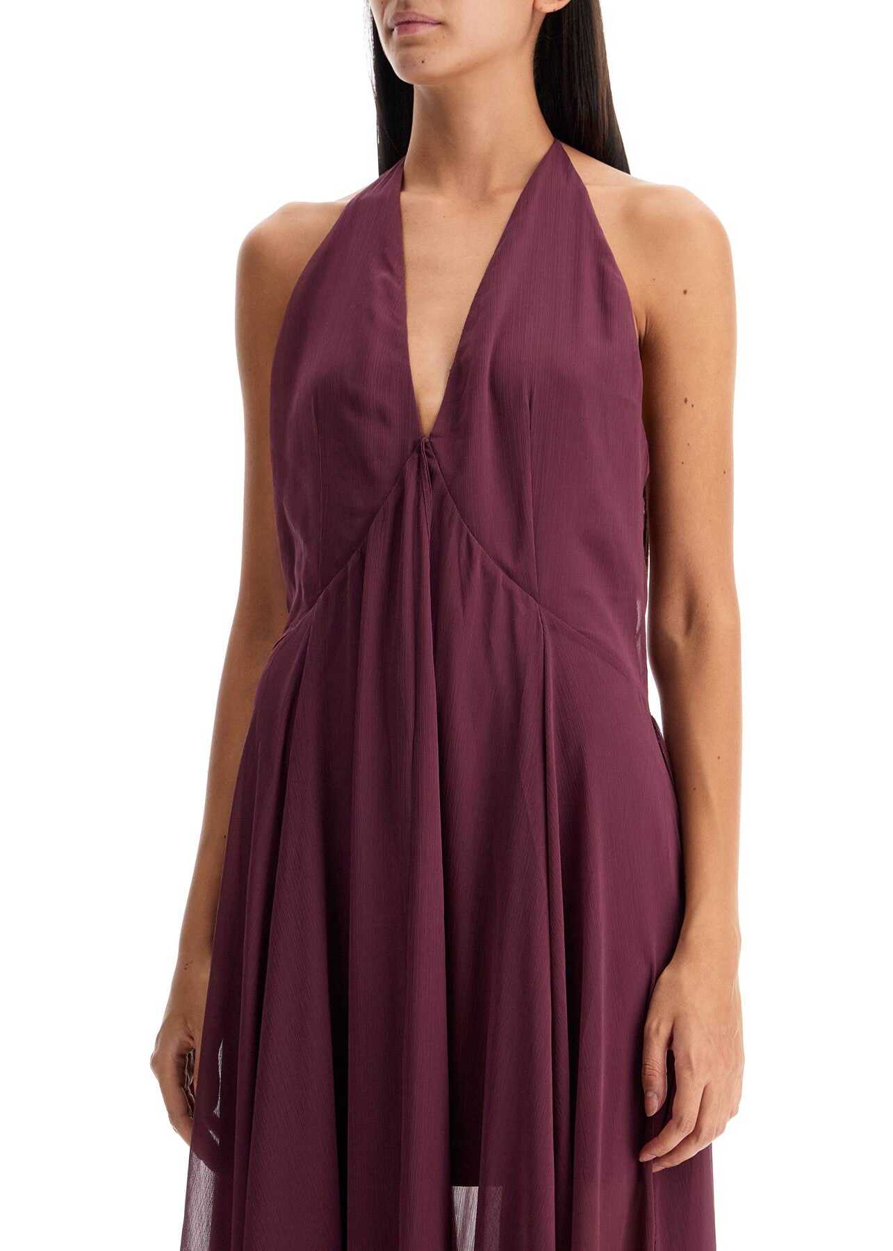 This long Rotate dress is made of recycled chiffon and features a backless design. It has a deep American neckline with laces to tie at the back, and a wide flared skirt. Partially lined and closed with an invisible zipper at the back. The model is 177 cm tall and wears size FR 36.