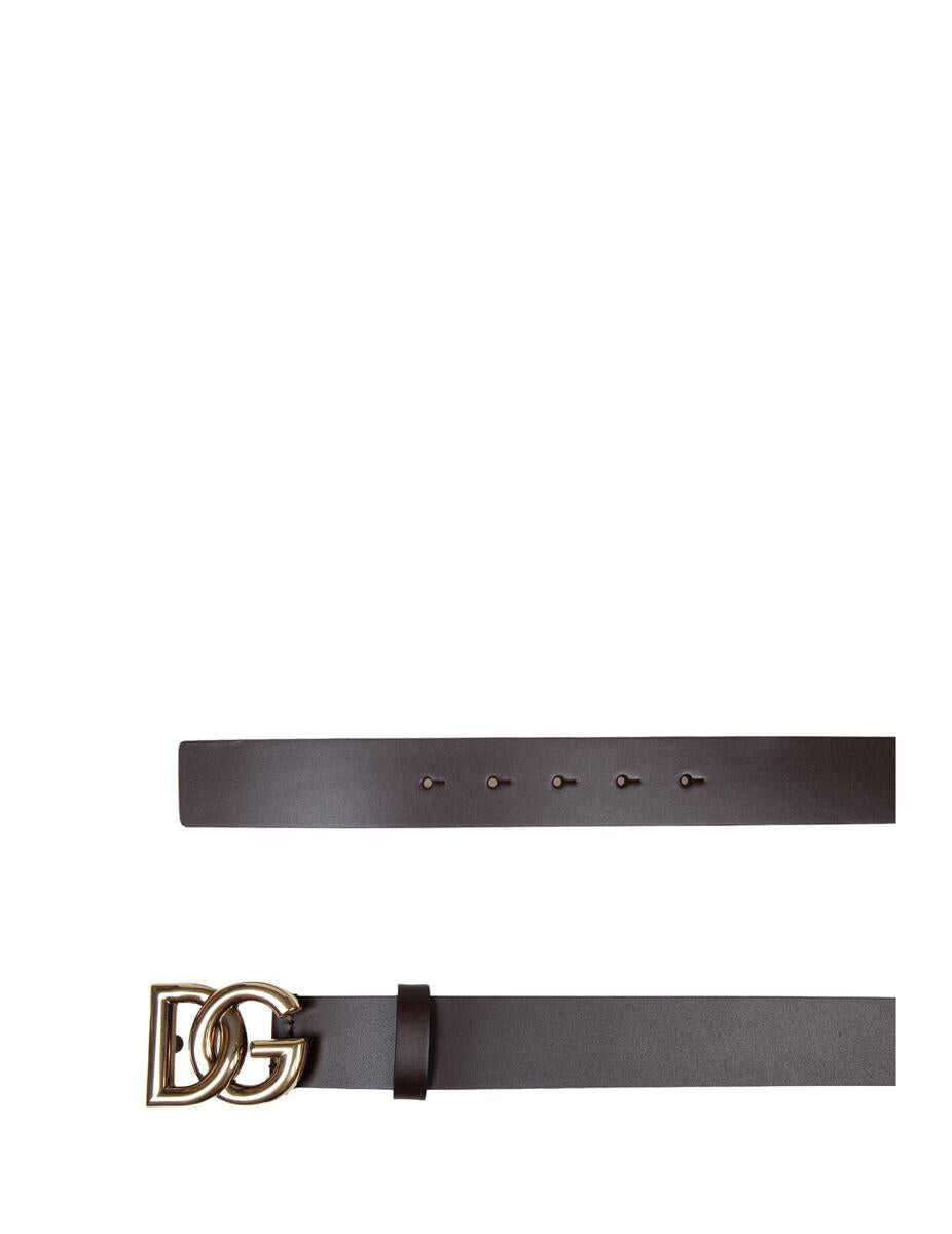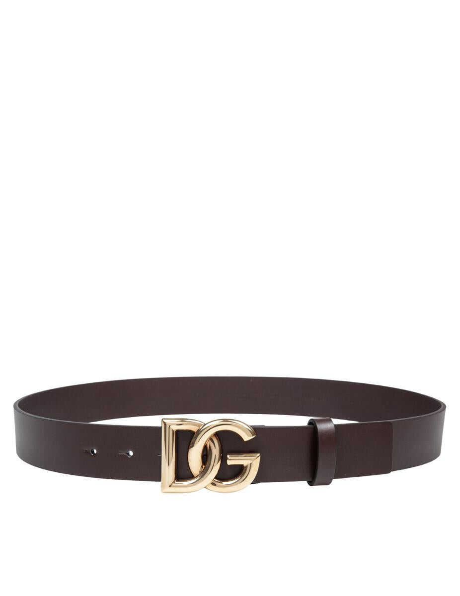 Calfskin belt Dark brown color Gold metal DG logo Mushroom closure under buckle Height 3.5cm