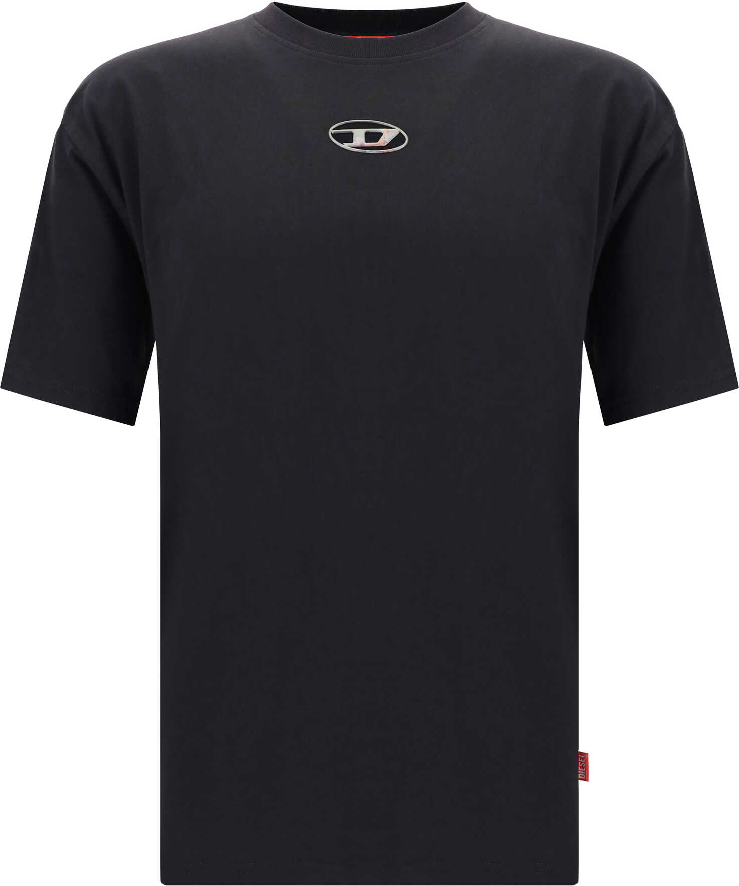 Cotton T-Shirt by Diesel, ribbed crew neck, iconic contrasting brand logo on front, monochrome pattern, regular fit.