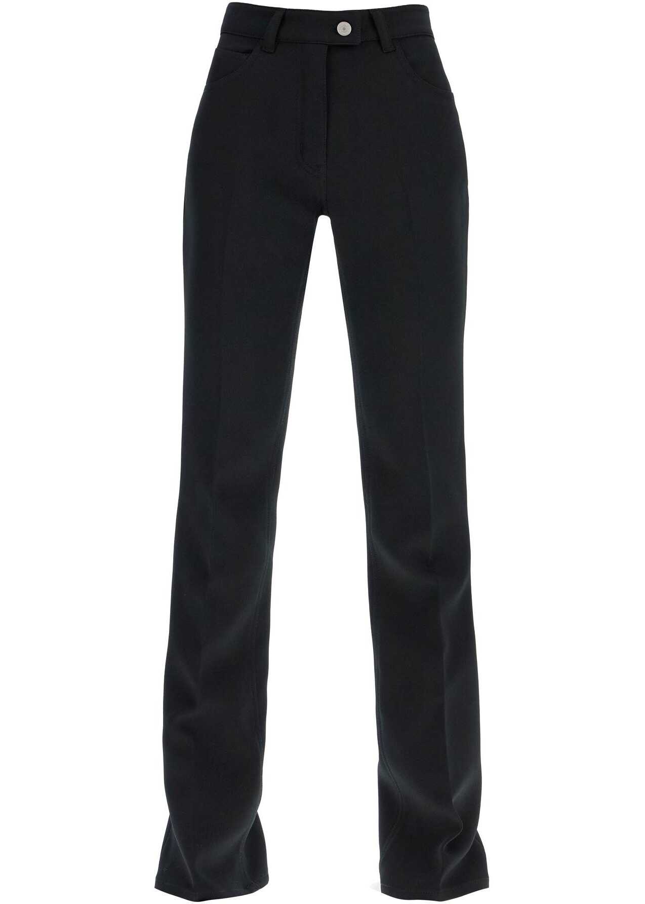 The classic five-pocket construction and bootcut with pressed crease characterize these Courrèges twill pants for a versatile look. The garment is completed by the medium waist with belt loops and front flap. The model is 177 cm tall and wears size FR 36.