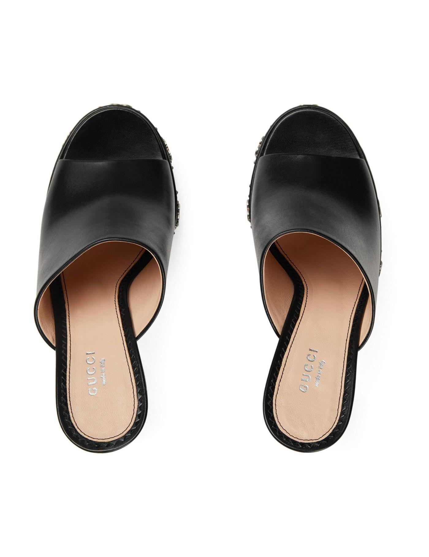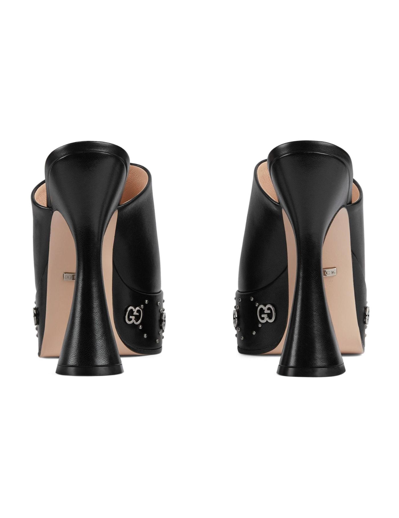 These Gucci leather mules are an ode to the '70s. Characterised by their chunky proportions, they're crafted with a fluted block heel and a wide front strap. Silver-tone GG plaques dot the platform sole and add a branded finish.