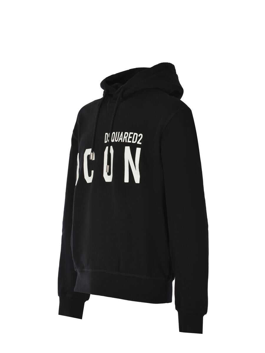 Sweatshirt hoodie Dsquared2 "Icon" made of cotton in Black. Maxi "Dsquared2 Icon" logo lettering print in contrasting White on the front. Hood with drawstring. Long sleeves. Ribbed cuffs and bottom.
