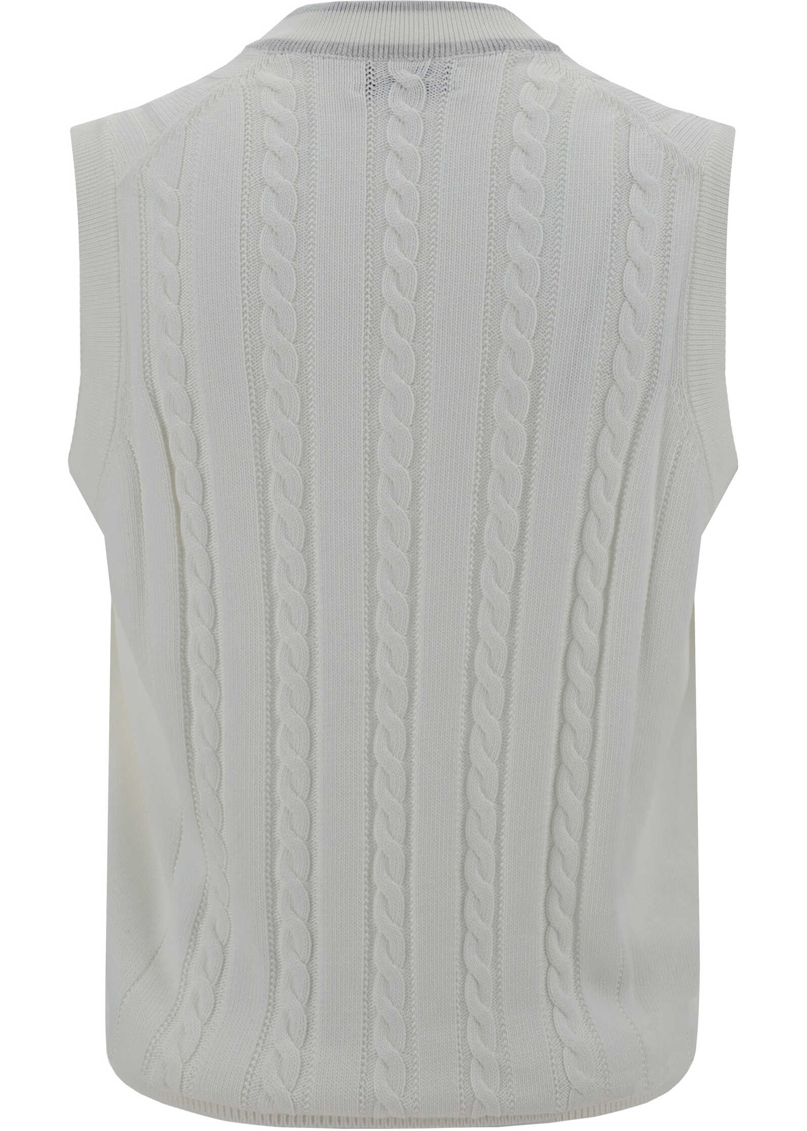 Cotton Vest by Brunello Cucinelli featuring a V-neck at front, a ribbed and braided design, a monochrome pattern, and a regular fit.