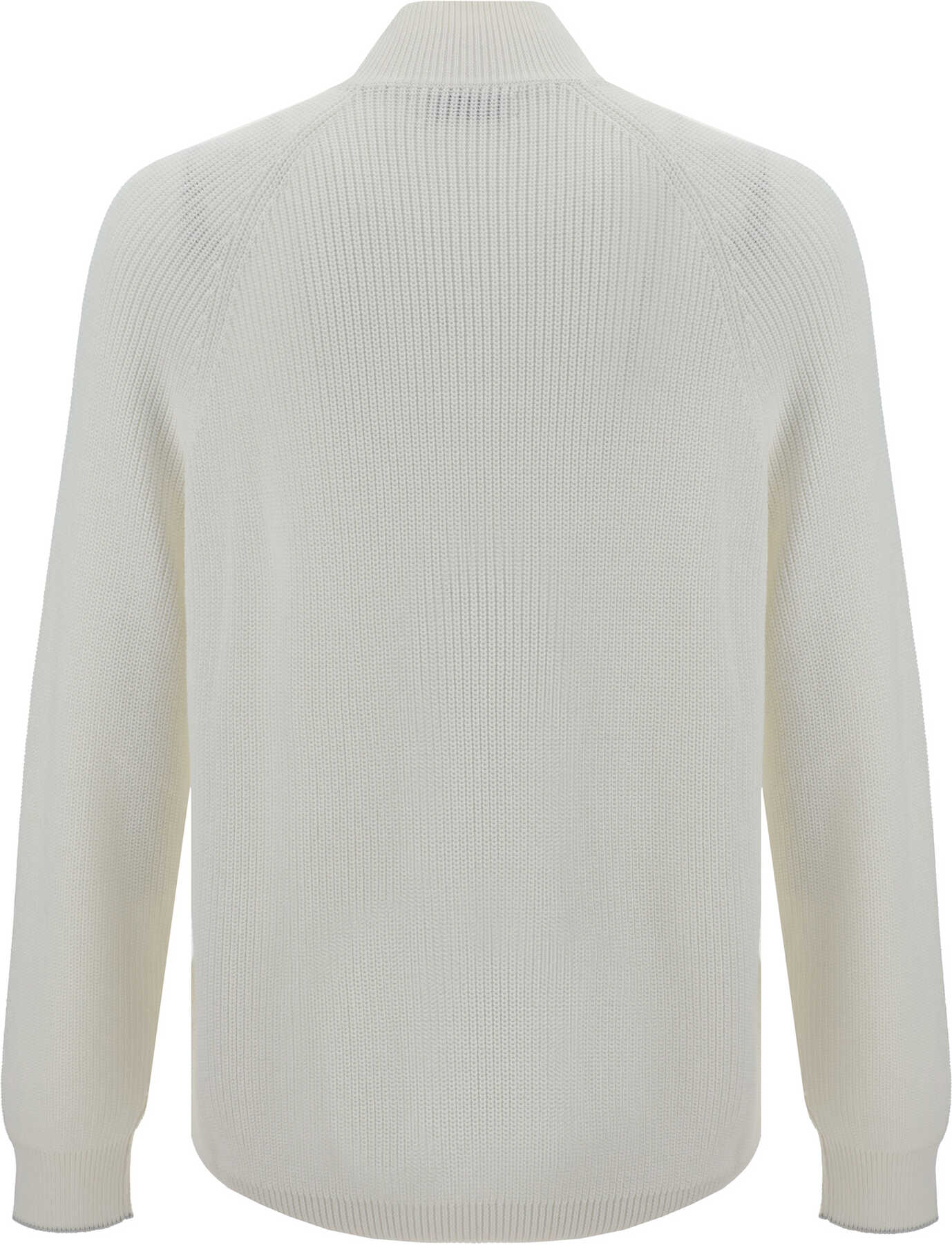 Cotton Cardigan by Brunello Cucinelli featuring a high collar, a double-slider front zipper closure, two side welt pockets, a ribbed design, a monochrome pattern, and a regular fit.