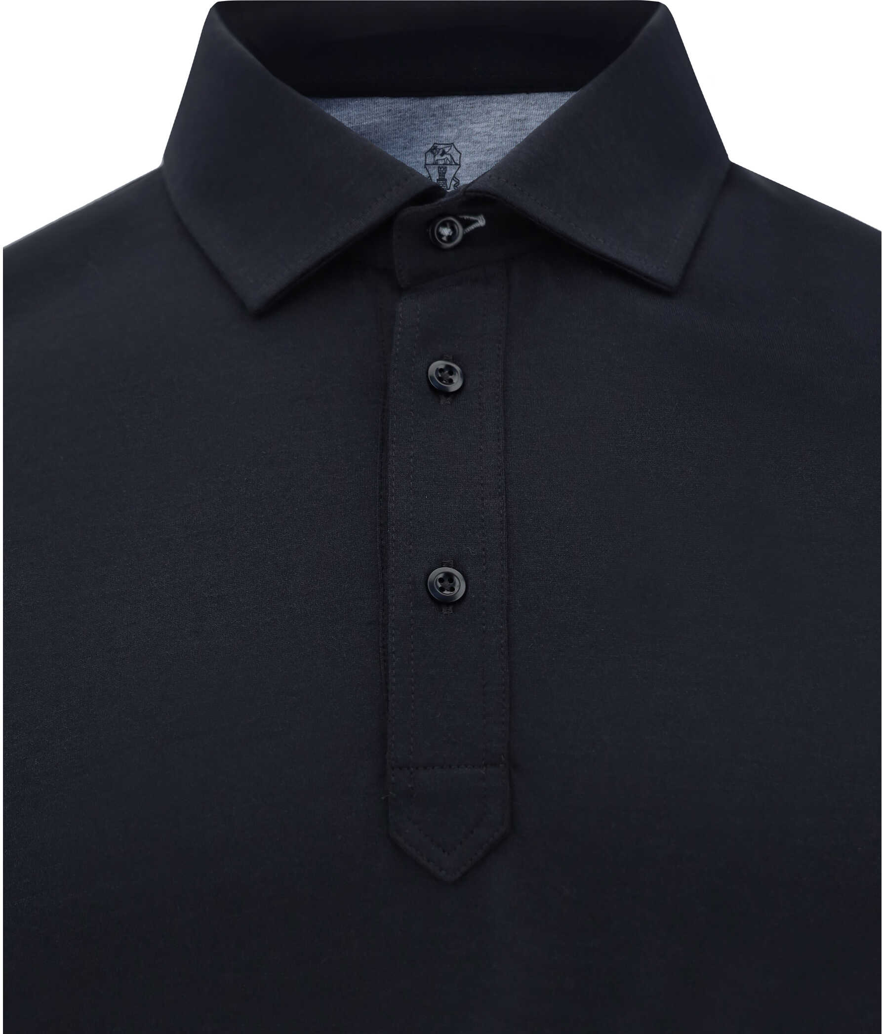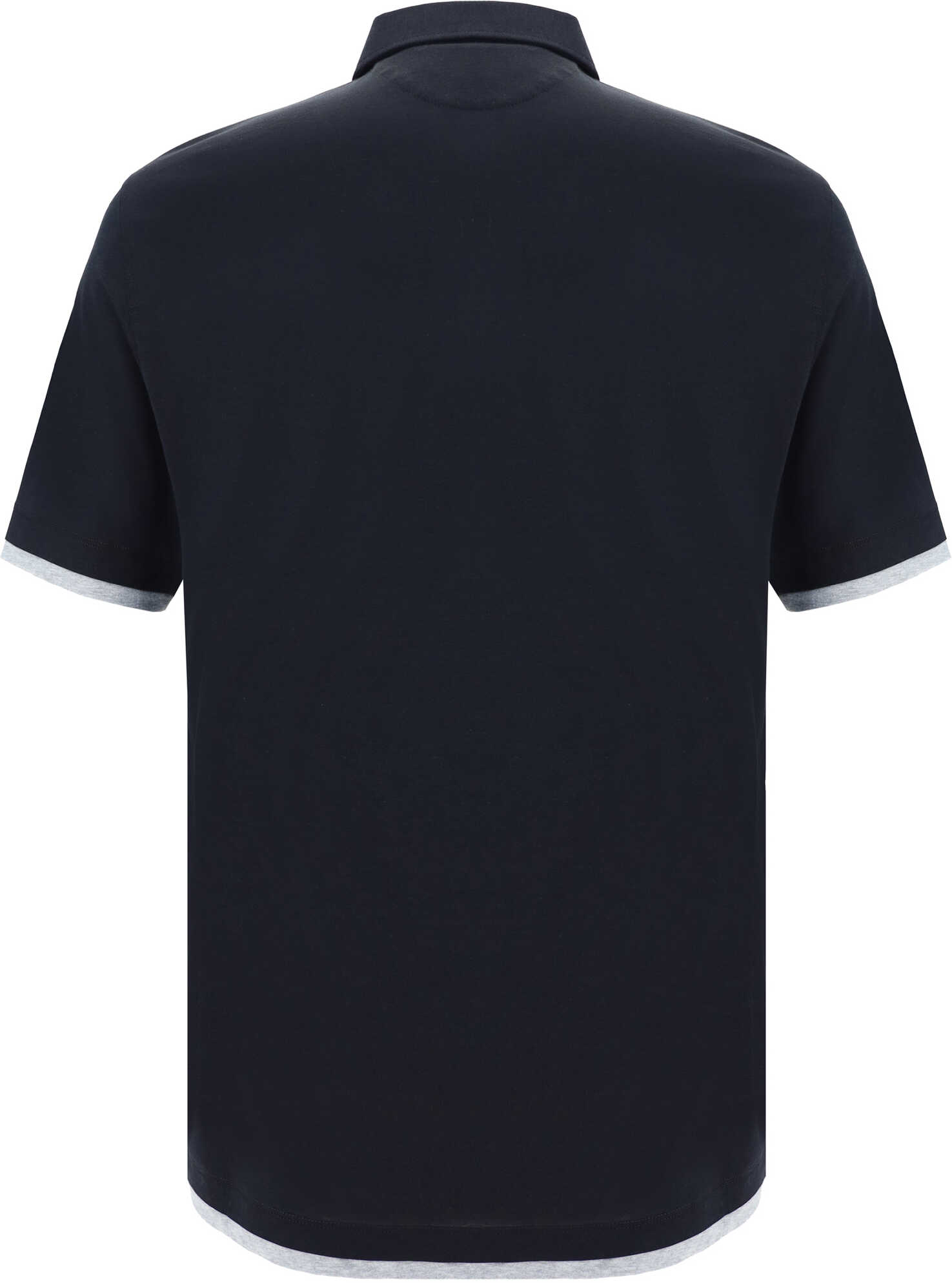 Silk Polo Shirt by Brunello Cucinelli featuring classic collar, tone-on-tone front buttons, two-tone double layer design at hems, regular fit.