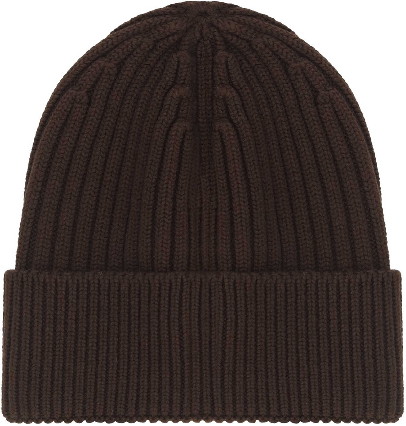 Virgin Wool Beanie Hat from Moncler, all-over ribbed design, turned-up hem, iconic embroidered logo patch on front.