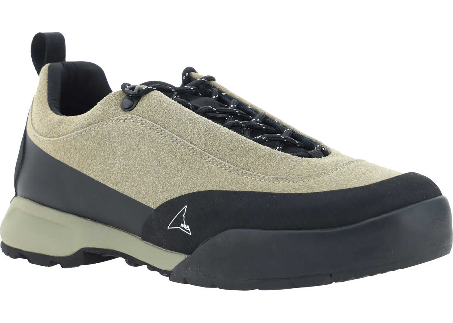 Calfskin Cingino Sneakers by Roa, suede leather details, structured platform sole, front elastic lace-up closure, contrasting embroidered iconic brand monogram label on front tongue, iconic embroidered brand logo on inner panel.