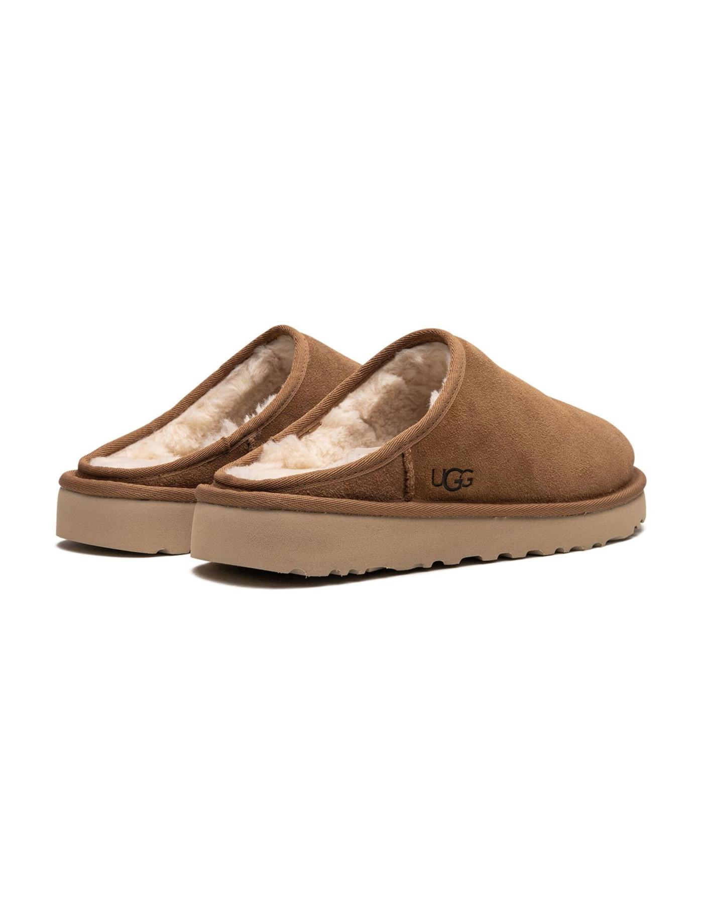 These UGG Classic Slip On slippers offer a versatile and casual look thanks to their effortless slip-on silhouette. They're crafted from chestnut-brown suede and lined with the brand's signature UGGplush™ blend of upcycled wool and lyocell for a soft and cosy sensation.