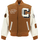 Brown Ducks Varsity Jacket by Carhartt Wip, ribbed collar, front closure using magnetic buttons, two welt pockets on front, ribbed hem, ribbed cuffs, faux leather sleeves, iconic brand logo patch applied to front, back and sleeves, regular fit.