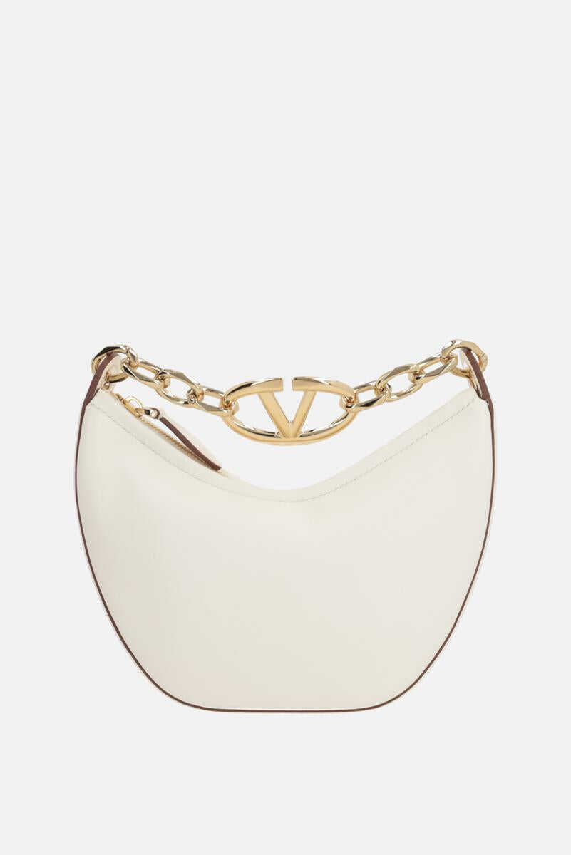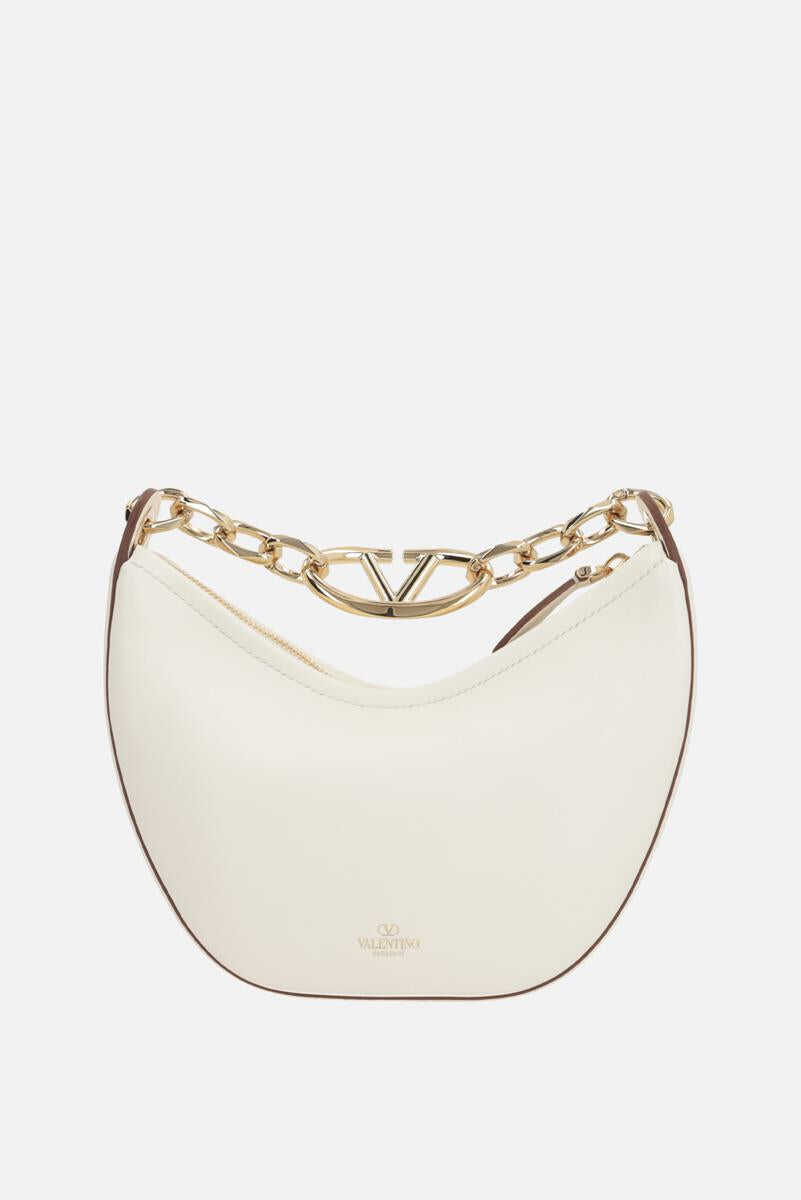 Valentino Garavani's hobo bag crafted in ivory nappa. It features gold-tone hardware, zip closure, chain handle with VLogo detailing and removable strap. Tone-on-tone nappa-lined interior with card slot. The design is completed by the unmistakable logo embossed at back.