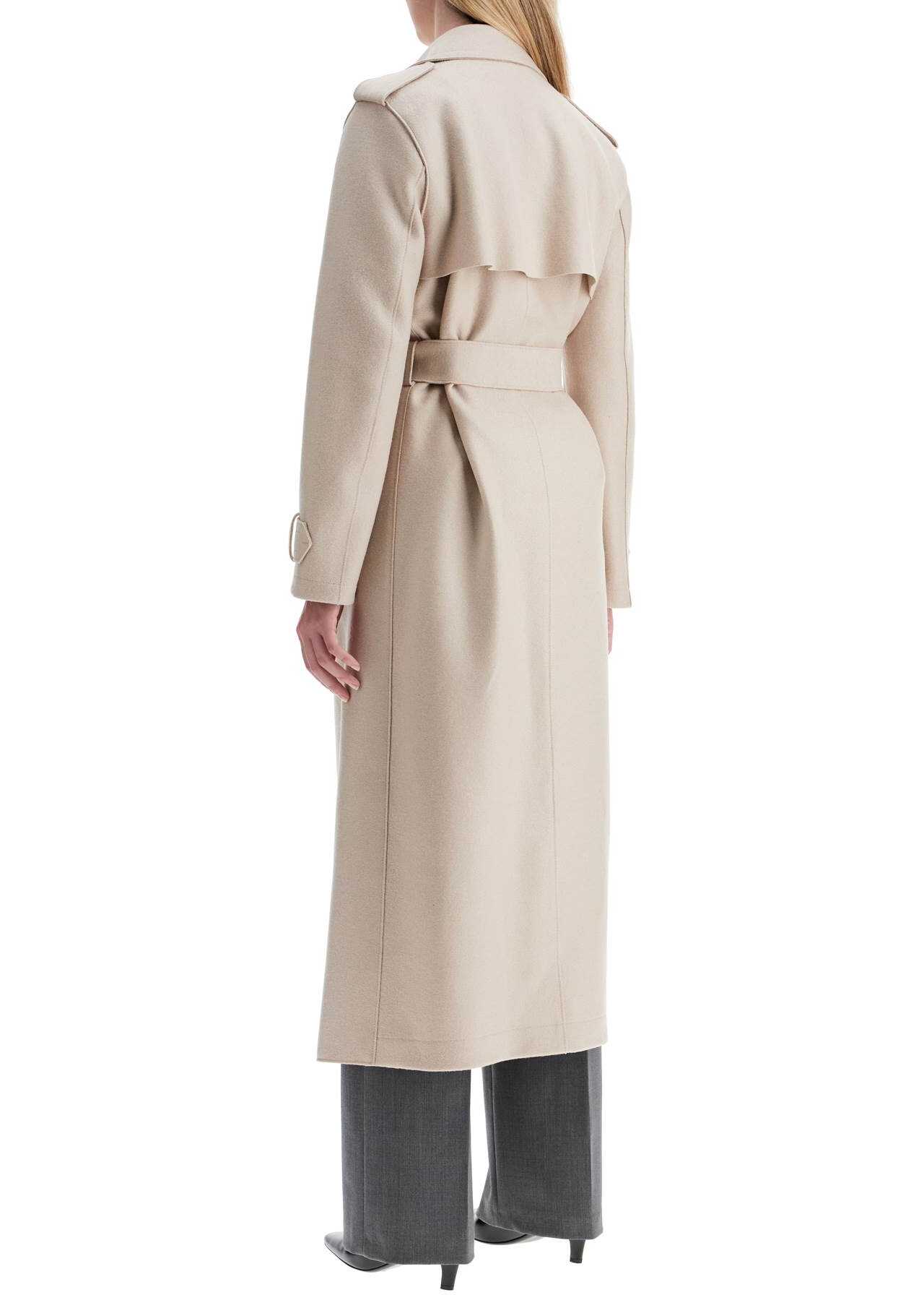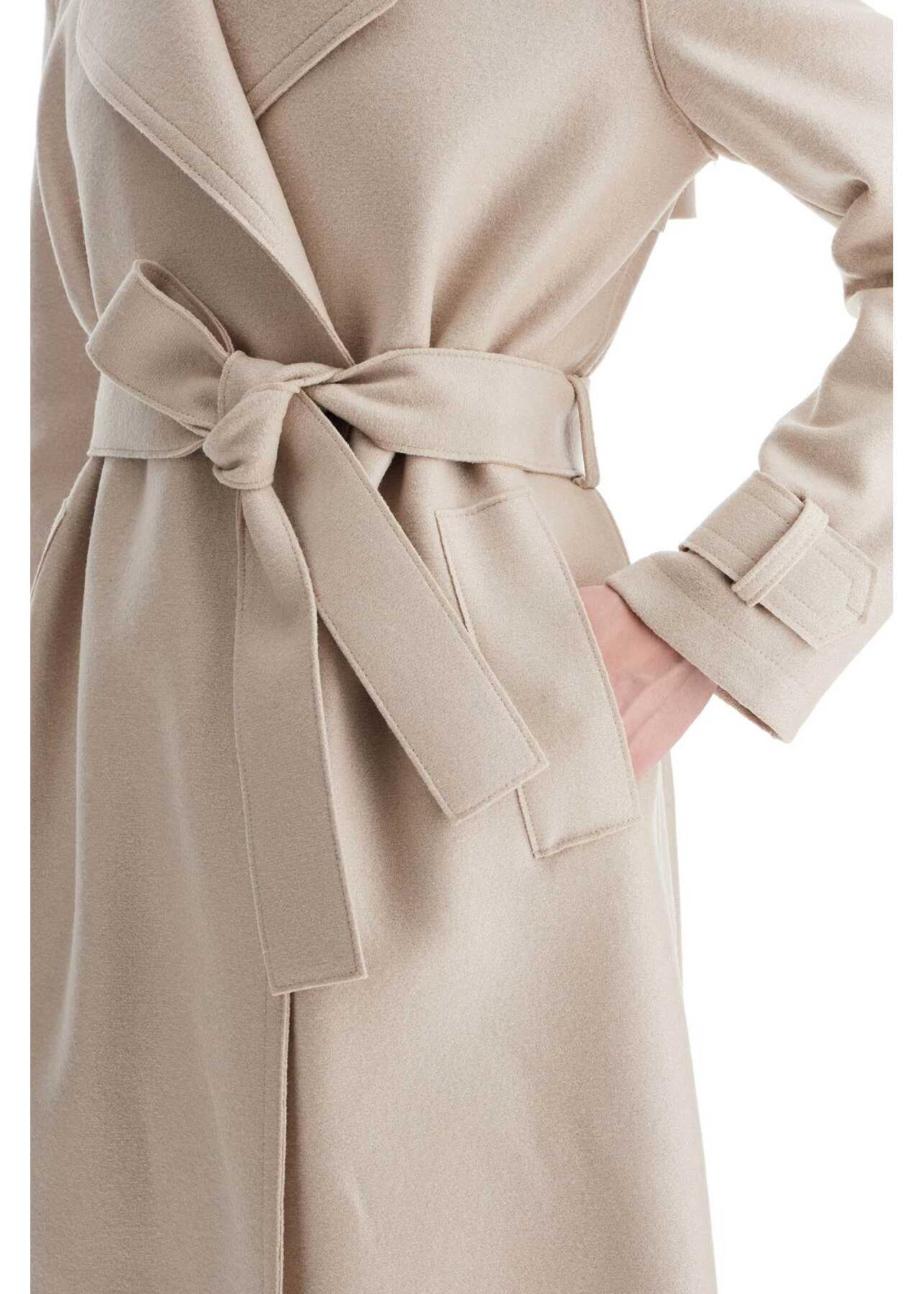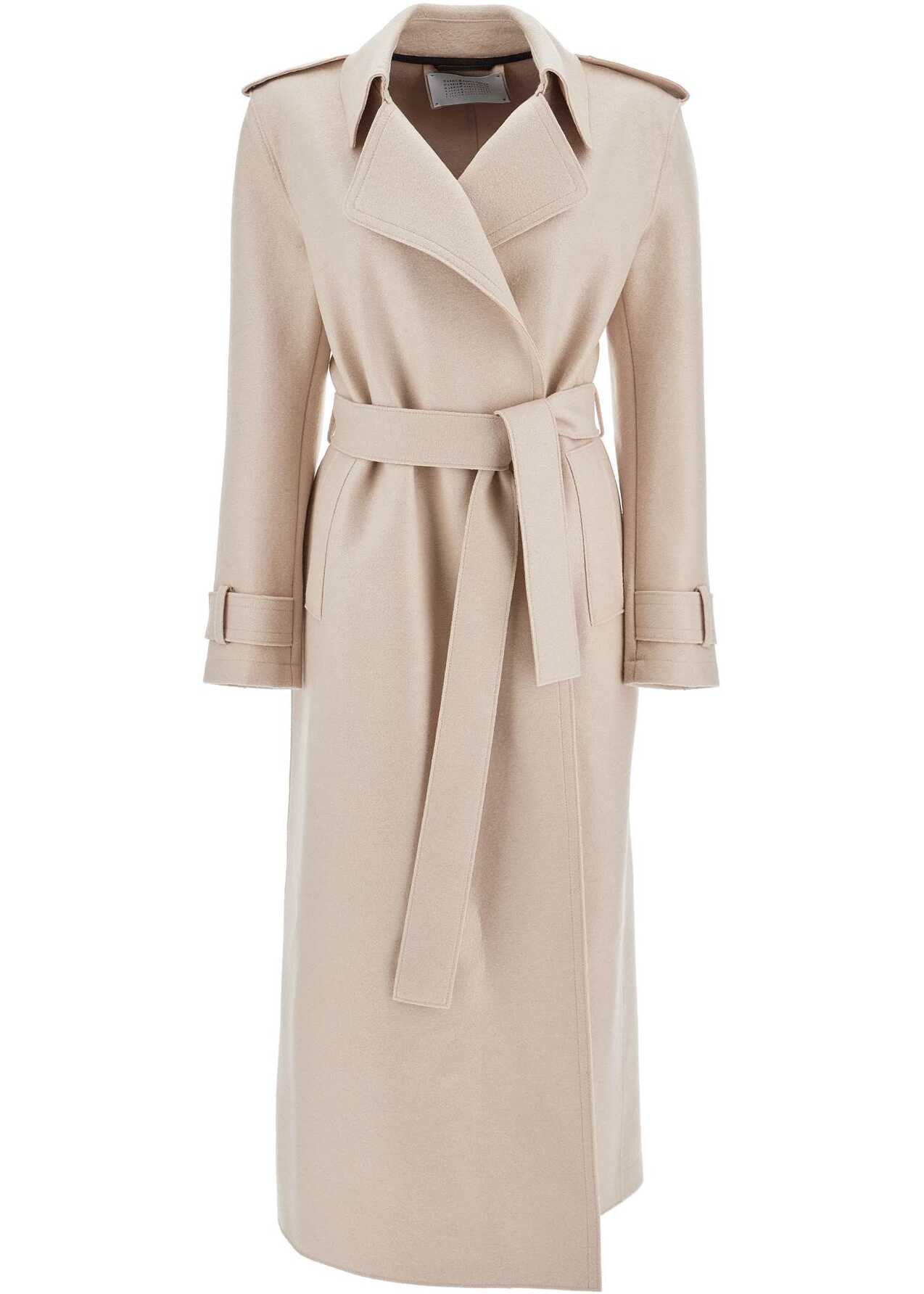 This long Harris Wharf London coat is made of pressed wool and features a tie belt and welt pockets. It has a trench-style design with epaulettes on the shoulders and a cape at the back, finished with double stitching. Unlined. The model is 177 cm tall and wears size IT 38.