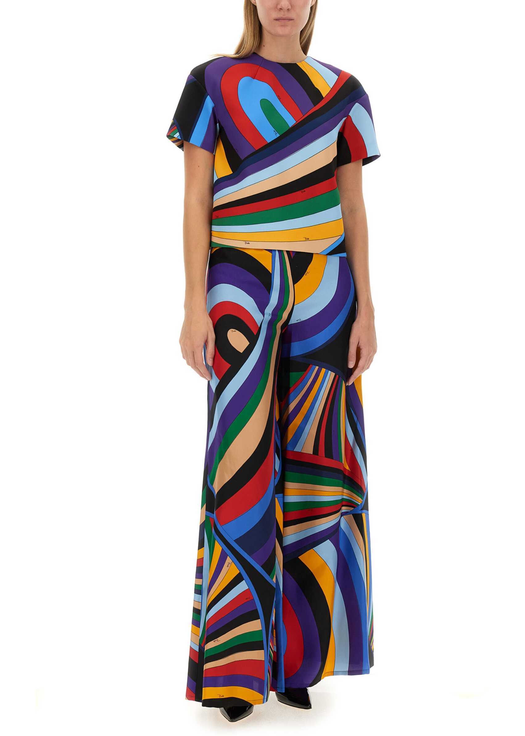 - REGULAR FIT- 96% POLYESTER 4% ELASTANE- MADE IN Italia- THE MODEL IS 180 CM TALL AND WEARS SIZE 40 IT