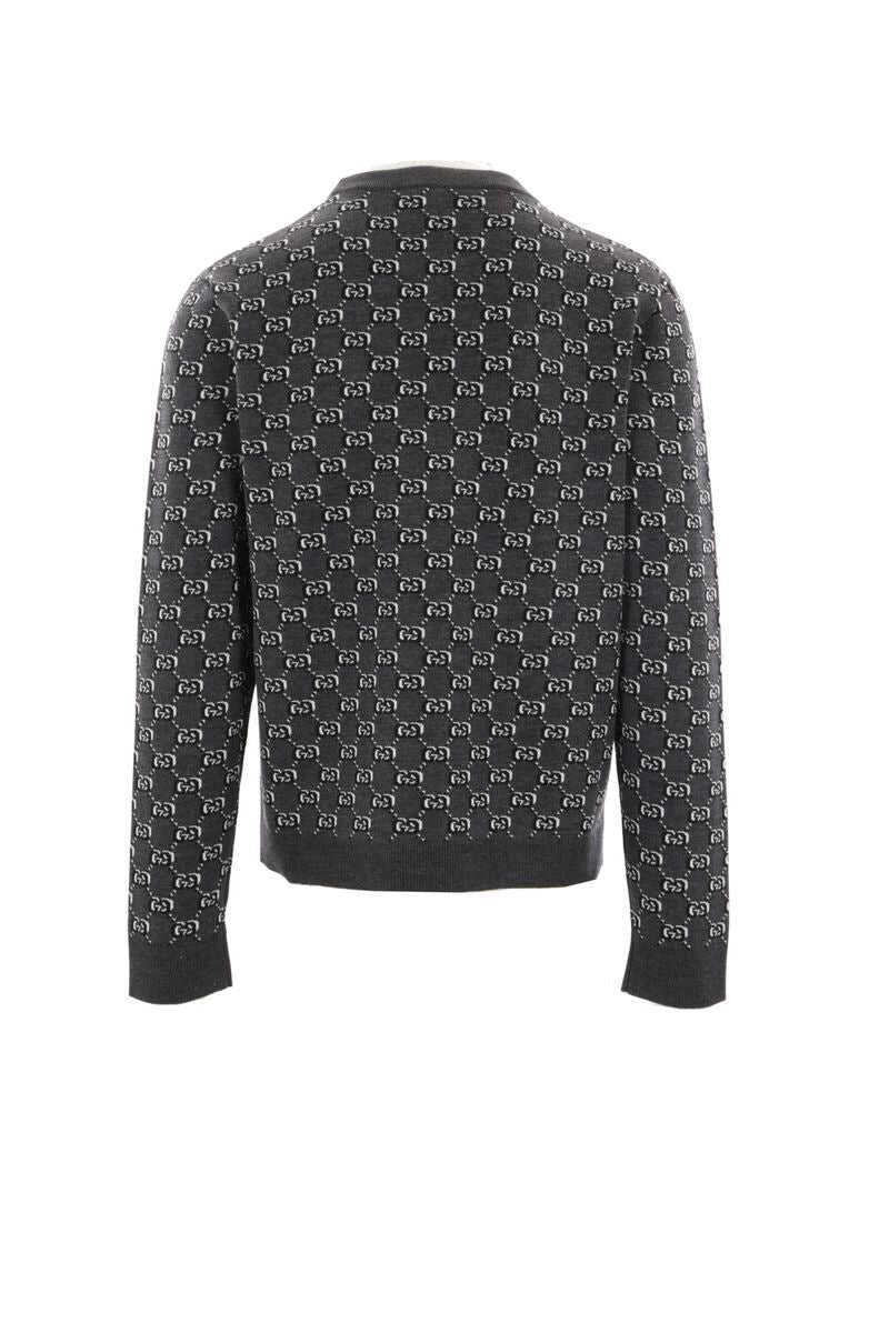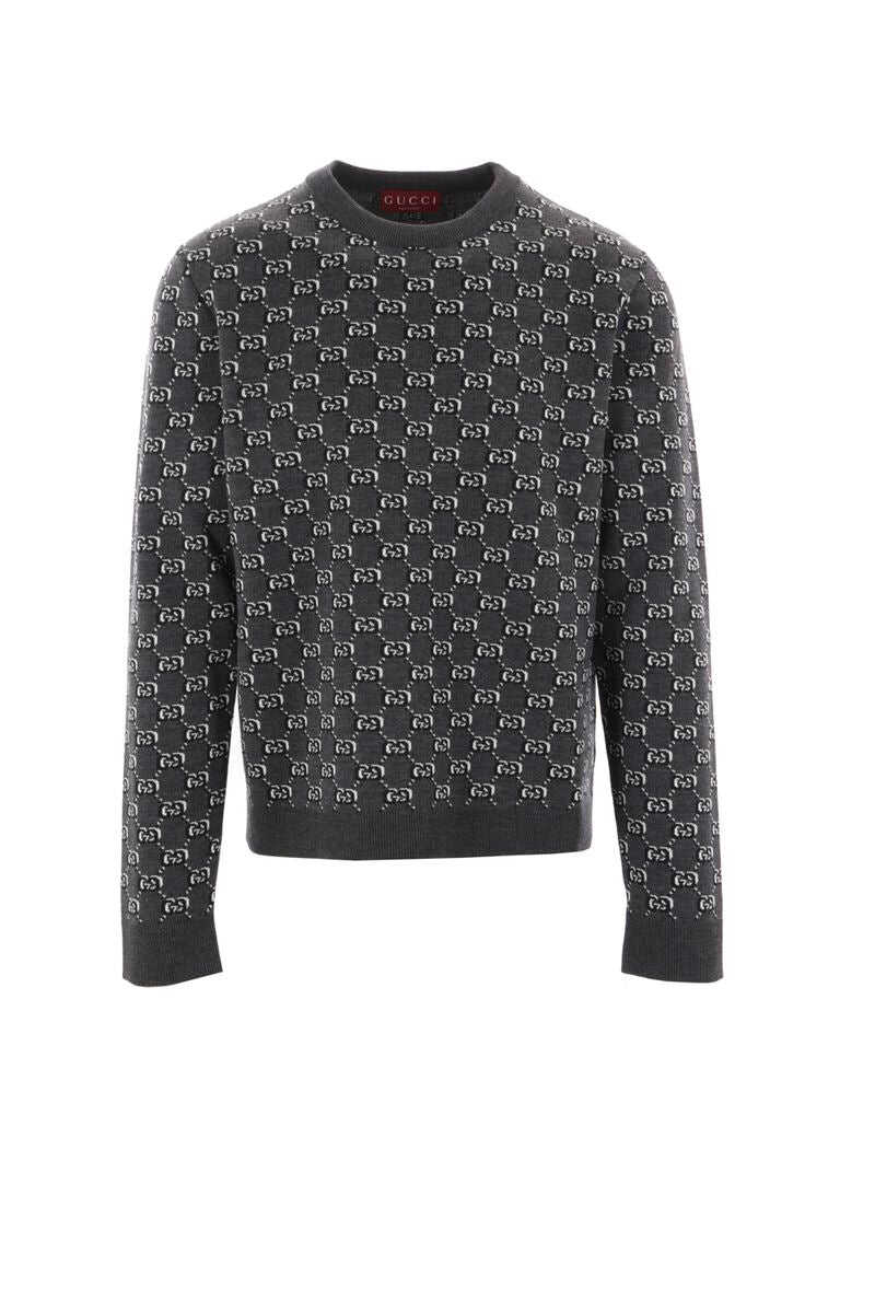 dark grey wool knitted construction signature Interlocking G patterned jacquard crew neck long sleeves ribbed cuffs and hem