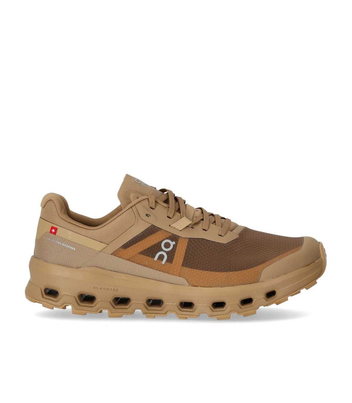 Trail sneaker Cloudvista 2 by On made of technical fabric and neoprene, breathable, in shades of beige. Iconic logo on the side and tongue, removable insole, maximum comfort thanks to CloudTech cushioning and Missiongrip™ sole, which provides the shoe with ideal grip for mixed terrain. Heel-to-toe drop 6mm. Sole height 4 cm.