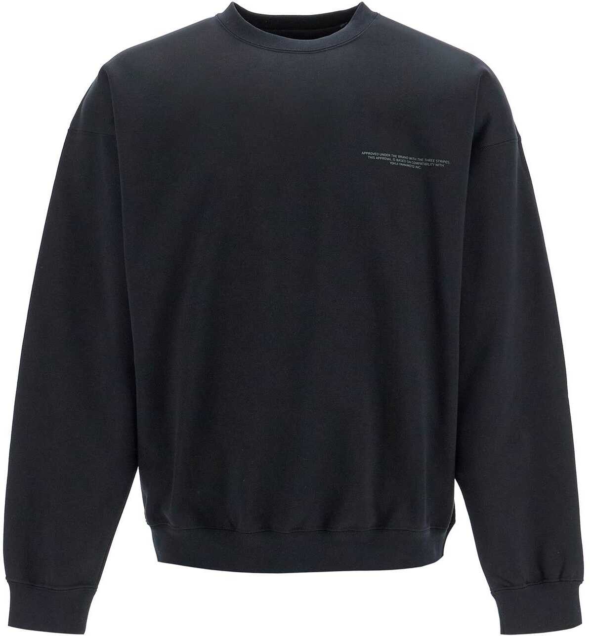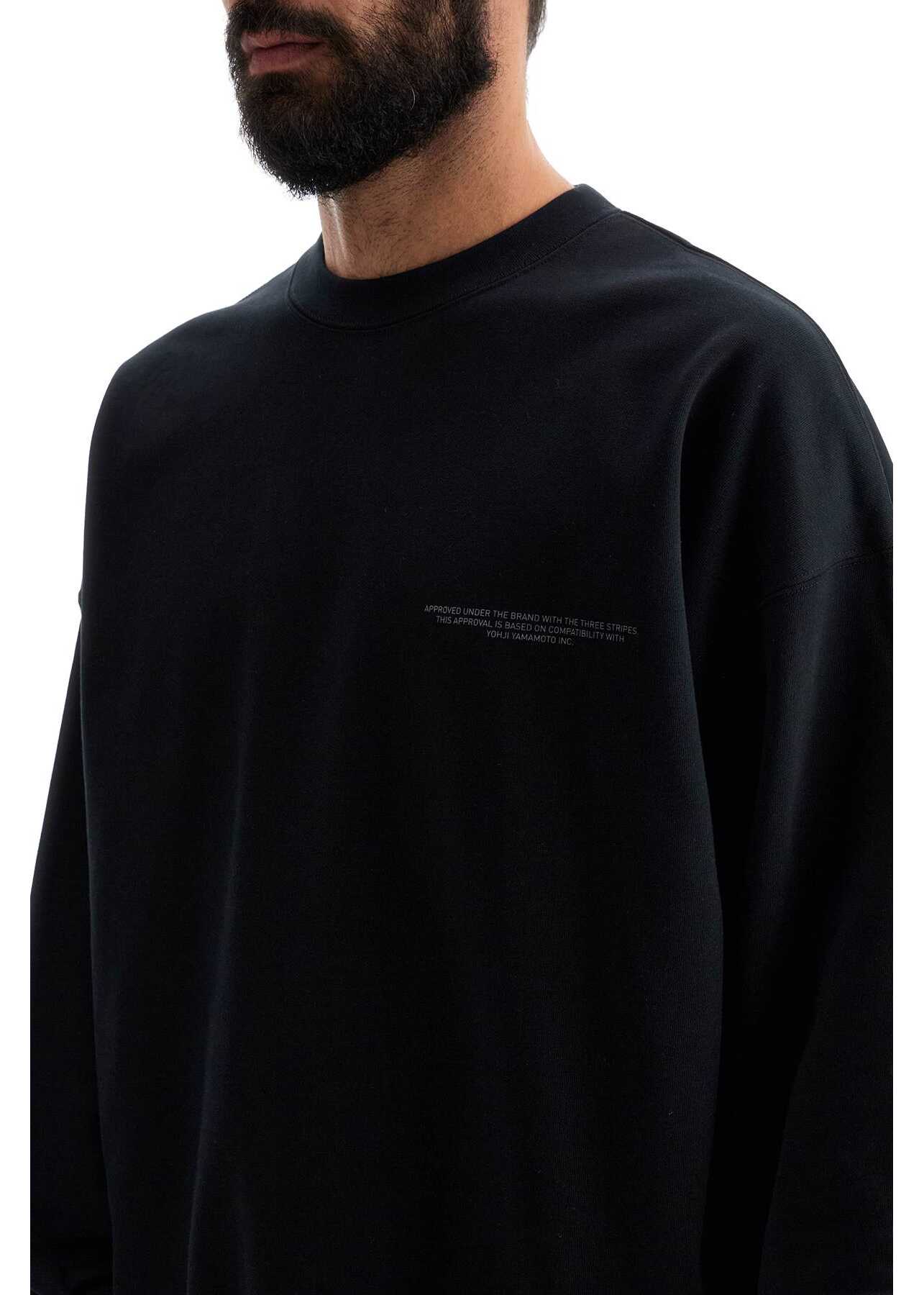 The Y-3 crewneck sweatshirt is made of brushed cotton blend jersey on the reverse side, featuring a large logo print on the back. It has an oversized fit with ribbed edges and printed lettering detail on the chest. The model is 187 cm tall and wears size M.