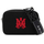 The Amiri camera bag is made of cotton canvas with a contrasting embroidered monogram on the front and leather trims. It features a zip closure, lined interior, and an adjustable and removable logo tape shoulder strap. The metallic accessories have a silver finish.