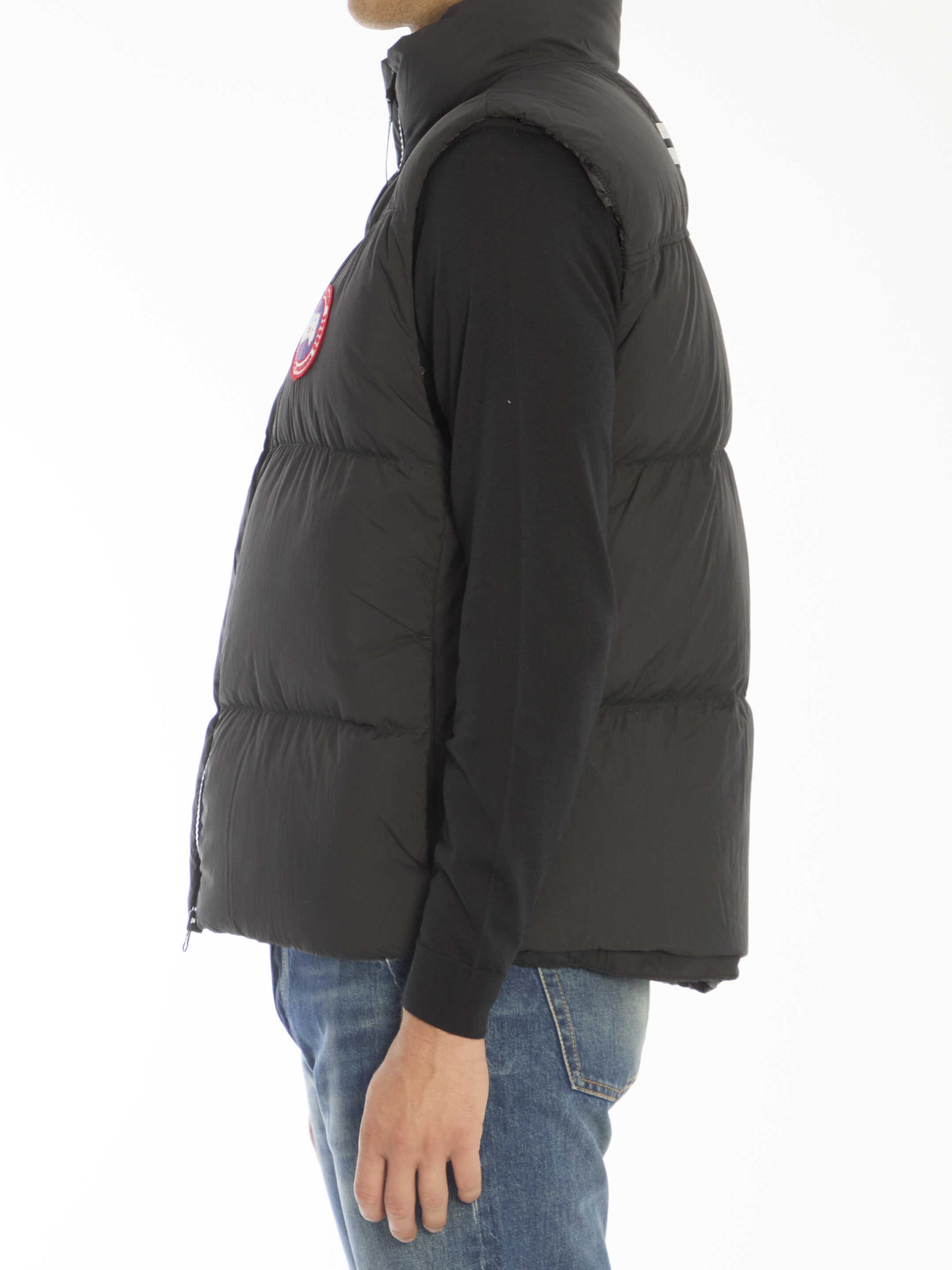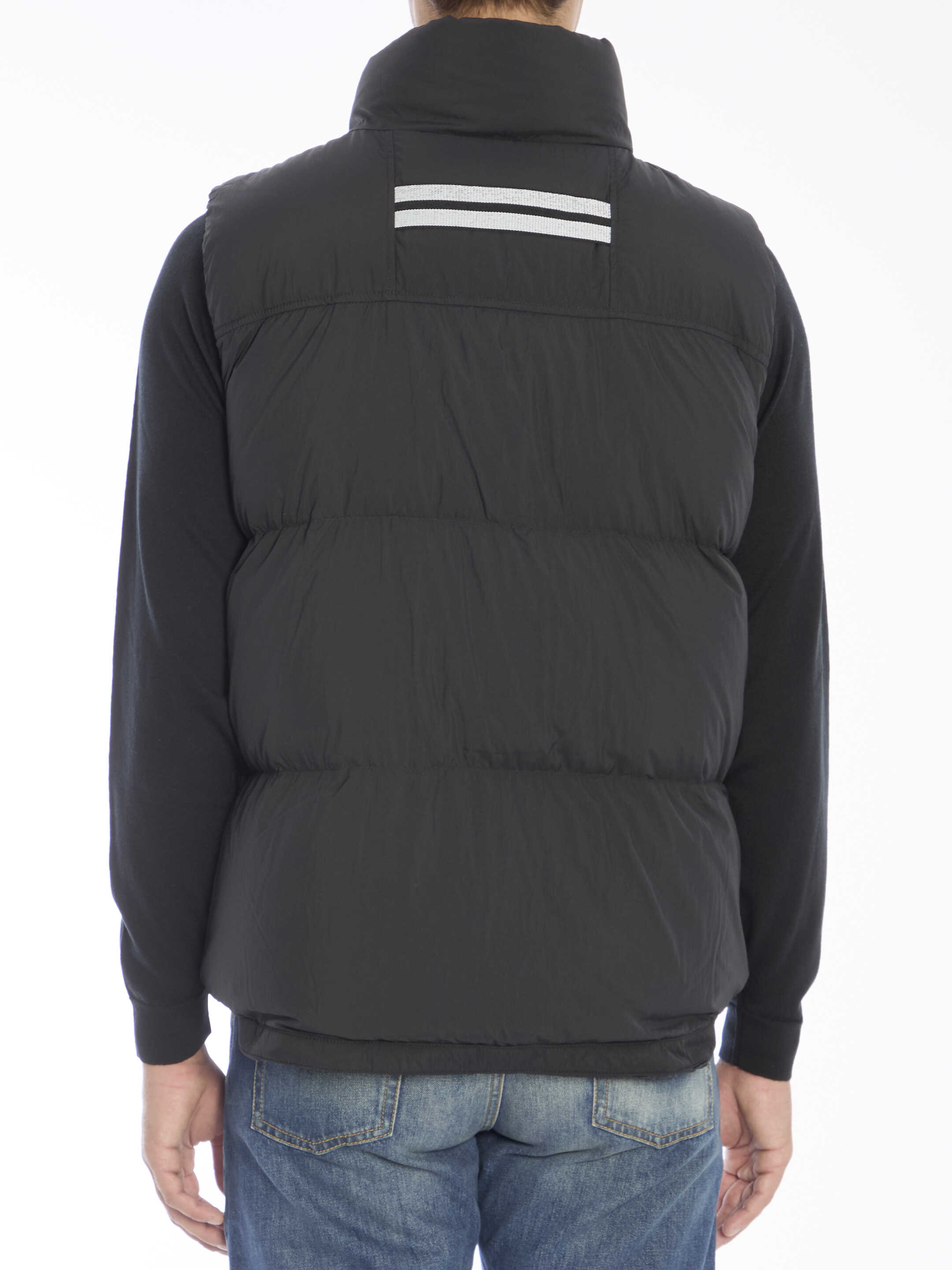Lawrence puffer vest in black padded nylon with Canada Goose patch on chest. It features high collar, front two-way zip closure and two side zip pockets. Lifetime warranty. Regular fit.